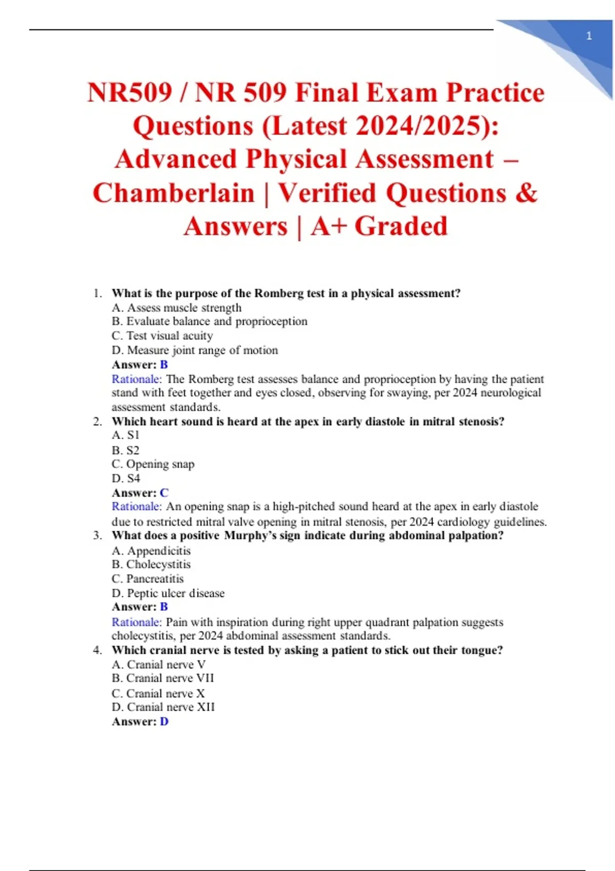 NR509 / NR 509 Final Exam Practice
