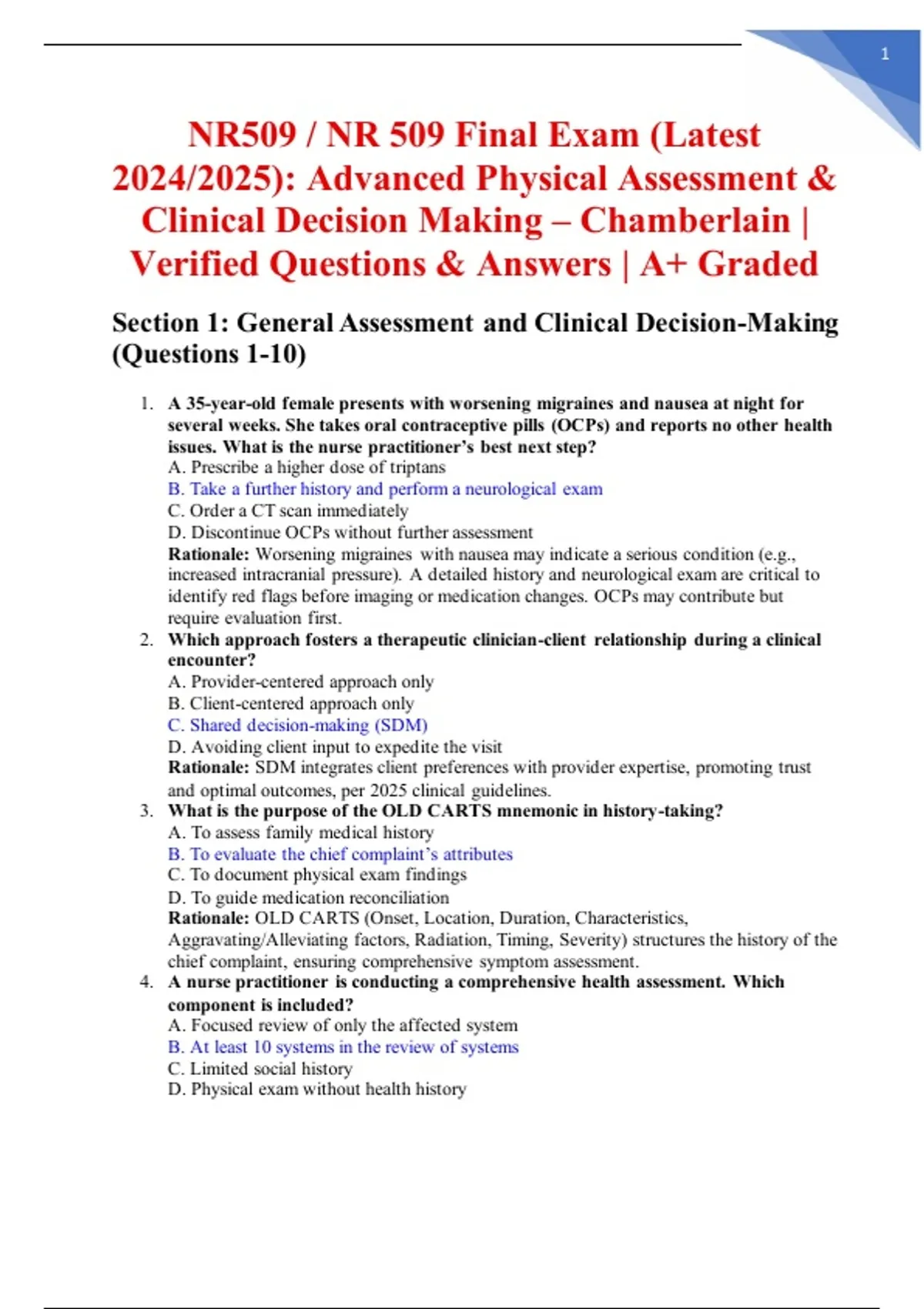 Section 1: General Assessment and Clinical Decision-Making