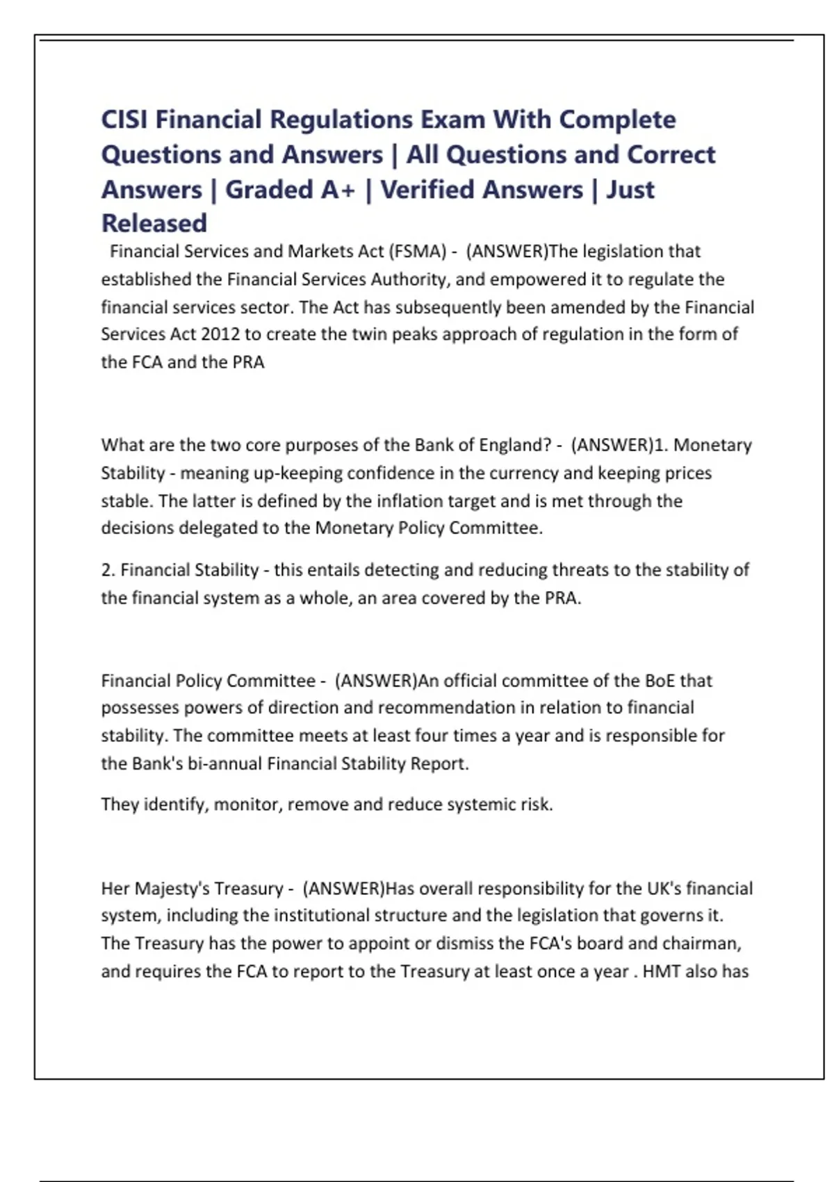 CISI Financial Regulations Exam With Complete