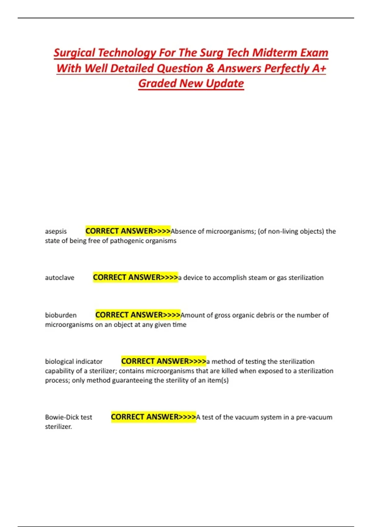 Surgical Technology For The Surg Tech Midterm Exam With Well Detailed Question & Answers Perfectly A+ Graded New Update Surgical Technology For The Surg Tech Midterm Exam With Well Detailed Question & Answers Perfectly A+ Graded New Update