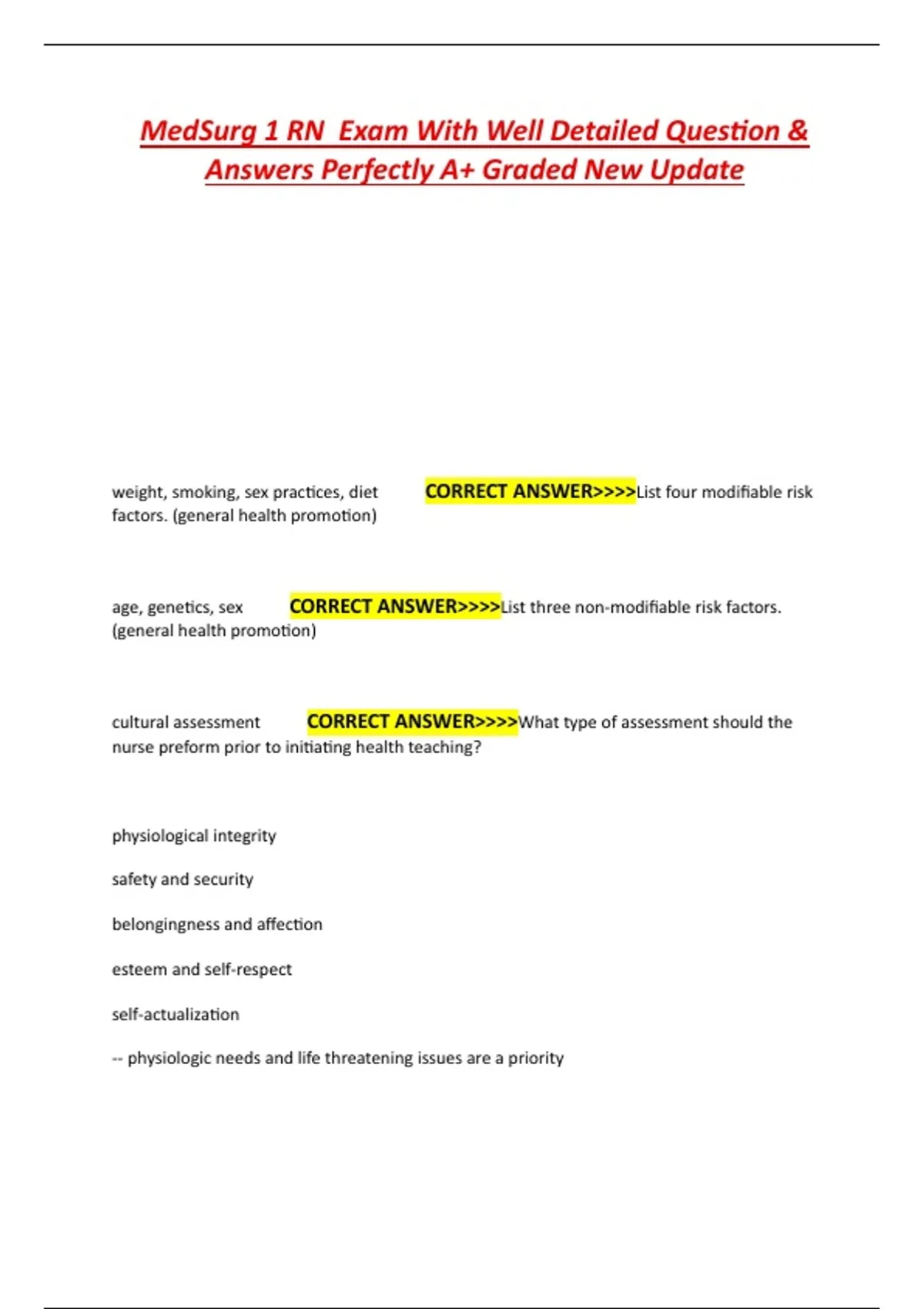 MedSurg 1 RN Exam With Well Detailed Question & Answers Perfectly A+ Graded New Update MedSurg 1 RN Exam With Well Detailed Question & Answers Perfectly A+ Graded New Update