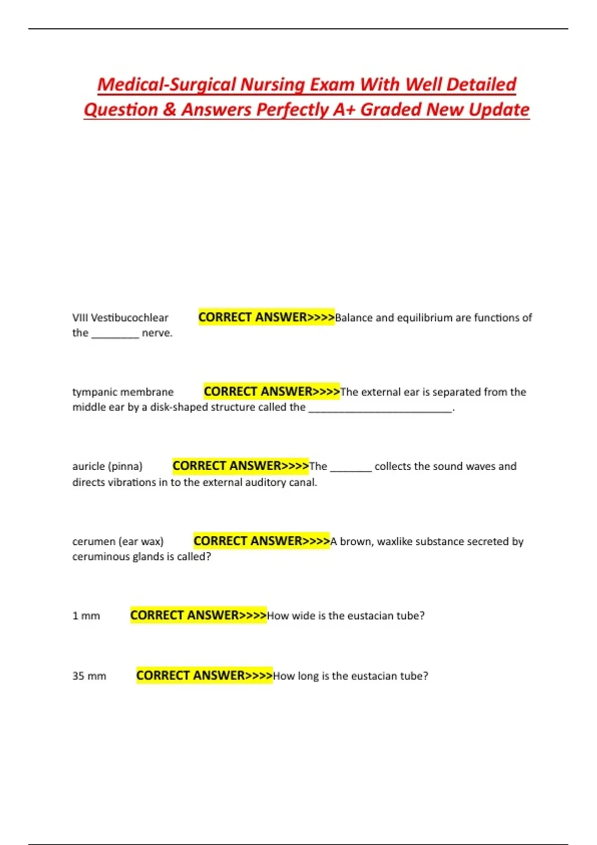 Medical-Surgical Nursing Exam With Well Detailed Question & Answers Perfectly A+ Graded New Update Medical-Surgical Nursing Exam With Well Detailed Question & Answers Perfectly A+ Graded New Update