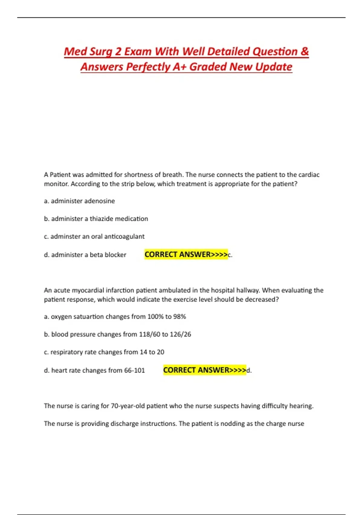 Med Surg 2 Exam With Well Detailed Question & Answers Perfectly A+ Graded New Update Med Surg 2 Exam With Well Detailed Question & Answers Perfectly A+ Graded New Update