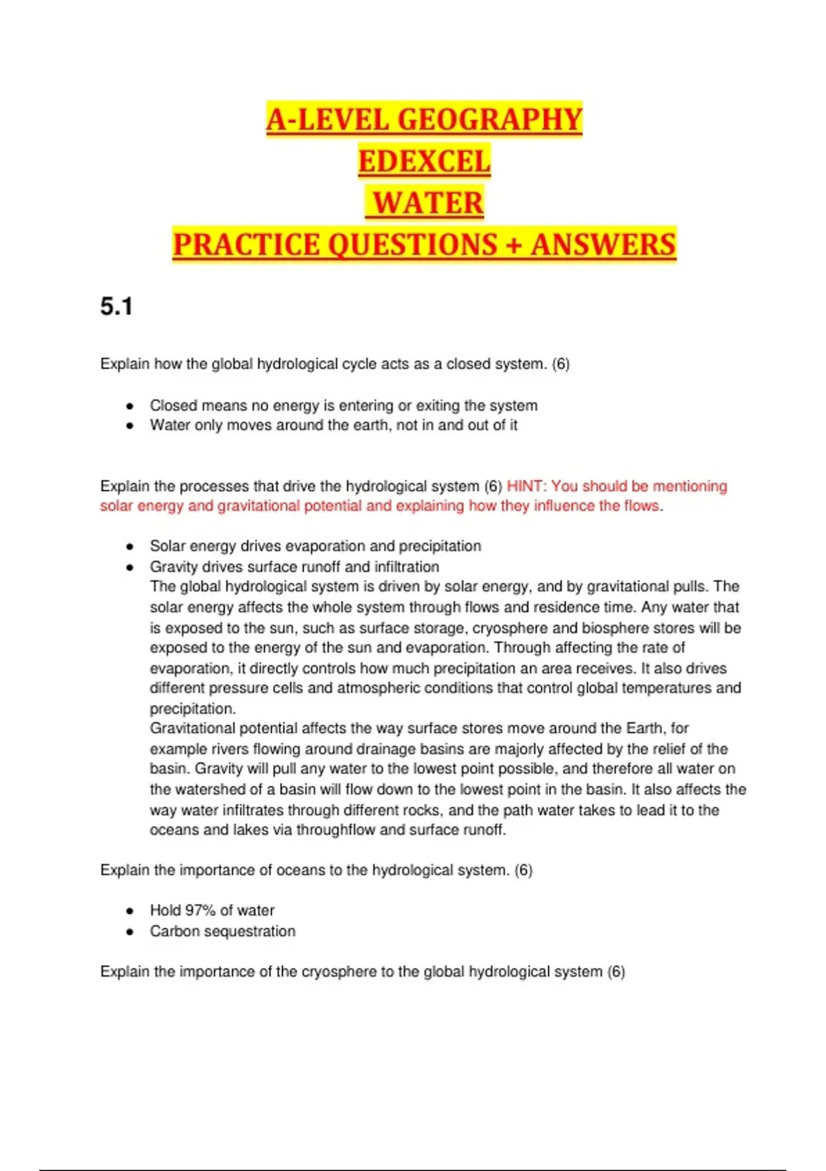 A-LEVEL GEOGRAPHY EDEXCEL WATER PRACTICE QUESTIONS + ANSWERS