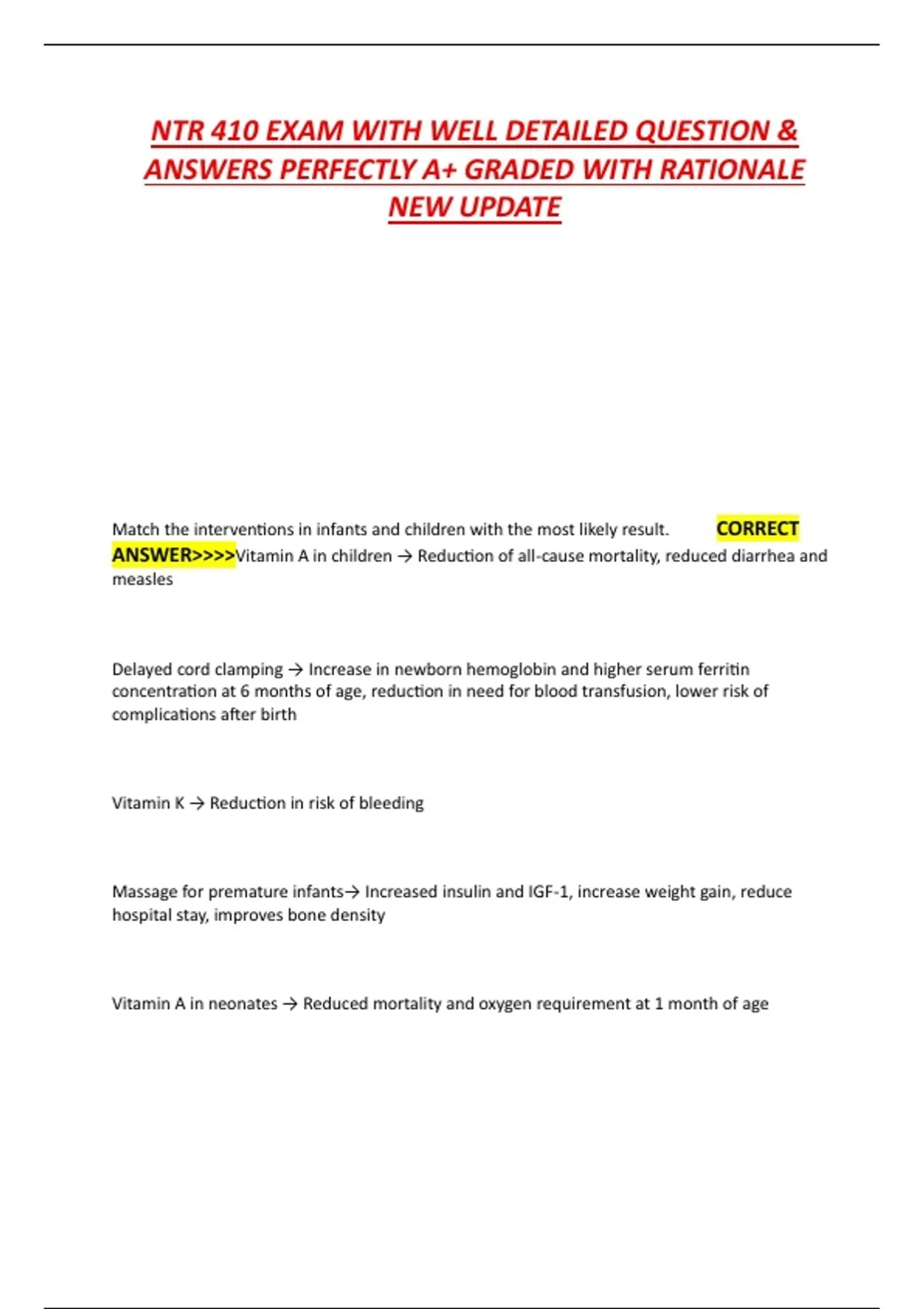 NTR 410 EXAM WITH WELL DETAILED QUESTION & ANSWERS PERFECTLY A+ GRADED WITH RATIONALE NEW UPDATE NTR 410 EXAM WITH WELL DETAILED QUESTION & ANSWERS PERFECTLY A+ GRADED WITH RATIONALE NEW UPDATE