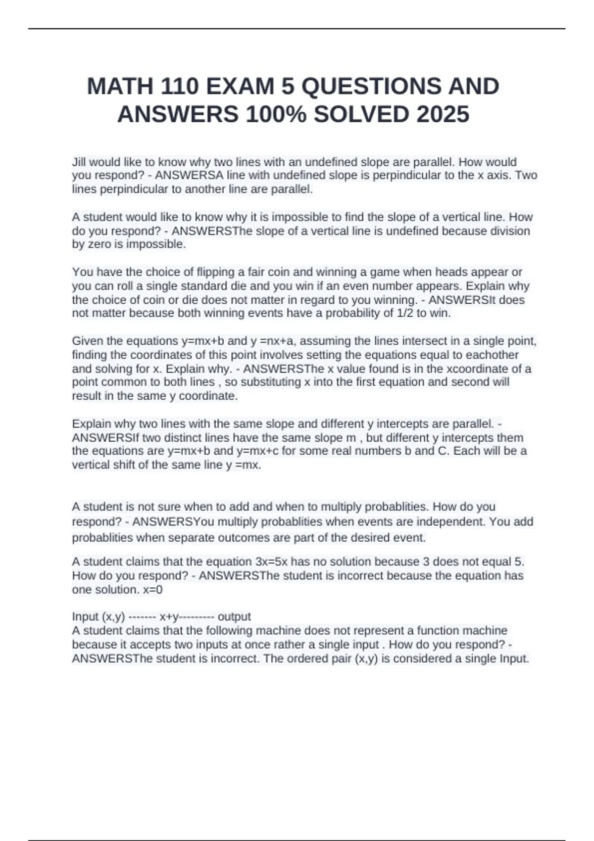 ANSWERS 100% SOLVED 2025