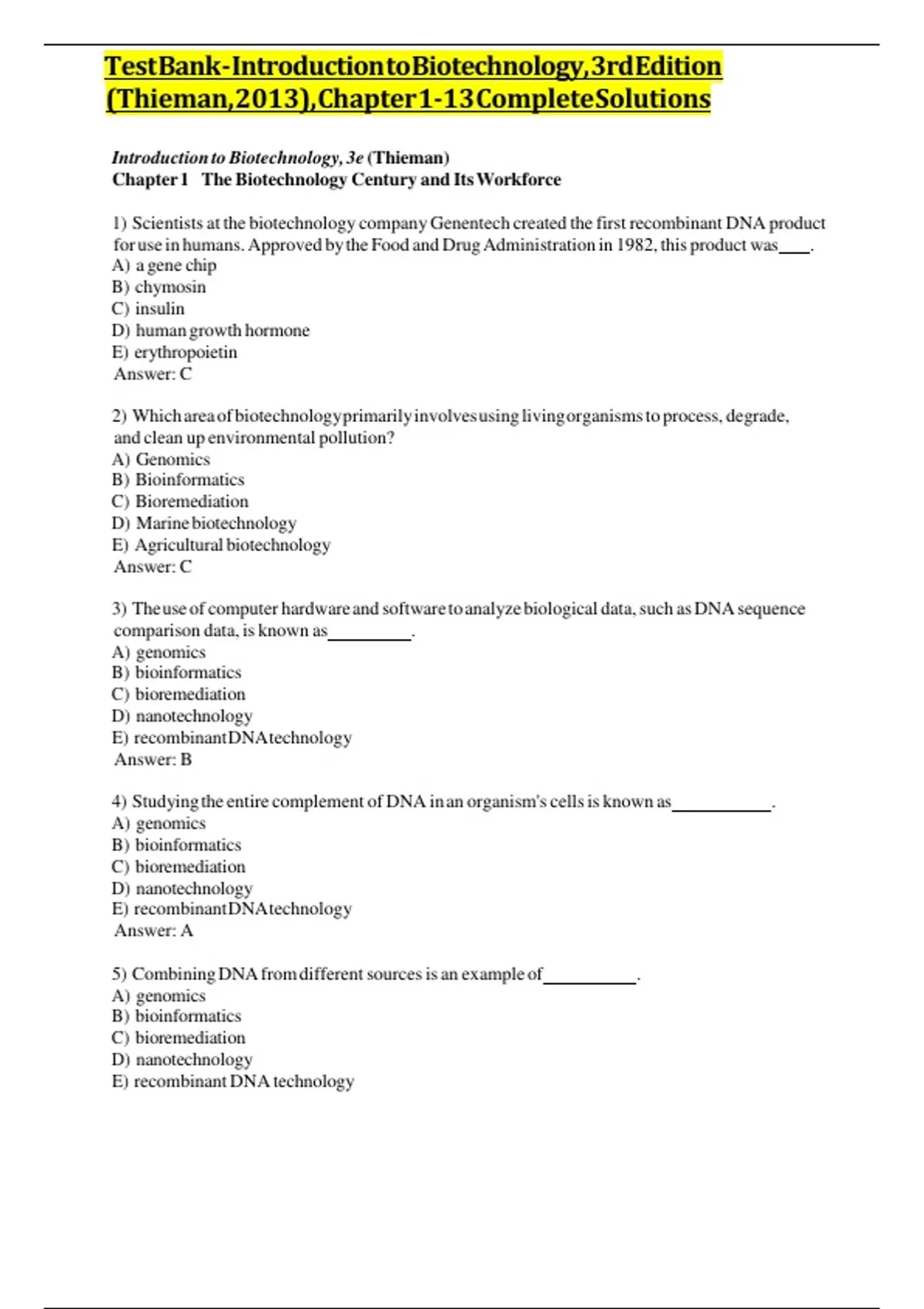 Introduction to Biotechnology, 3e (Thieman) e e e e
