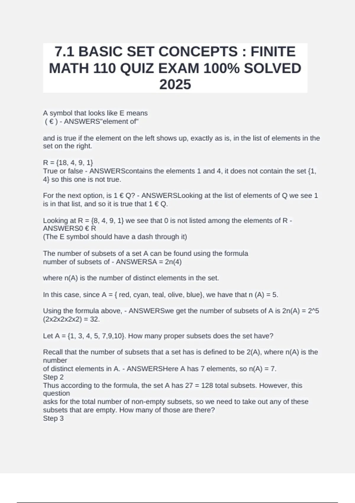 ( € ) - ANSWERS"element of"