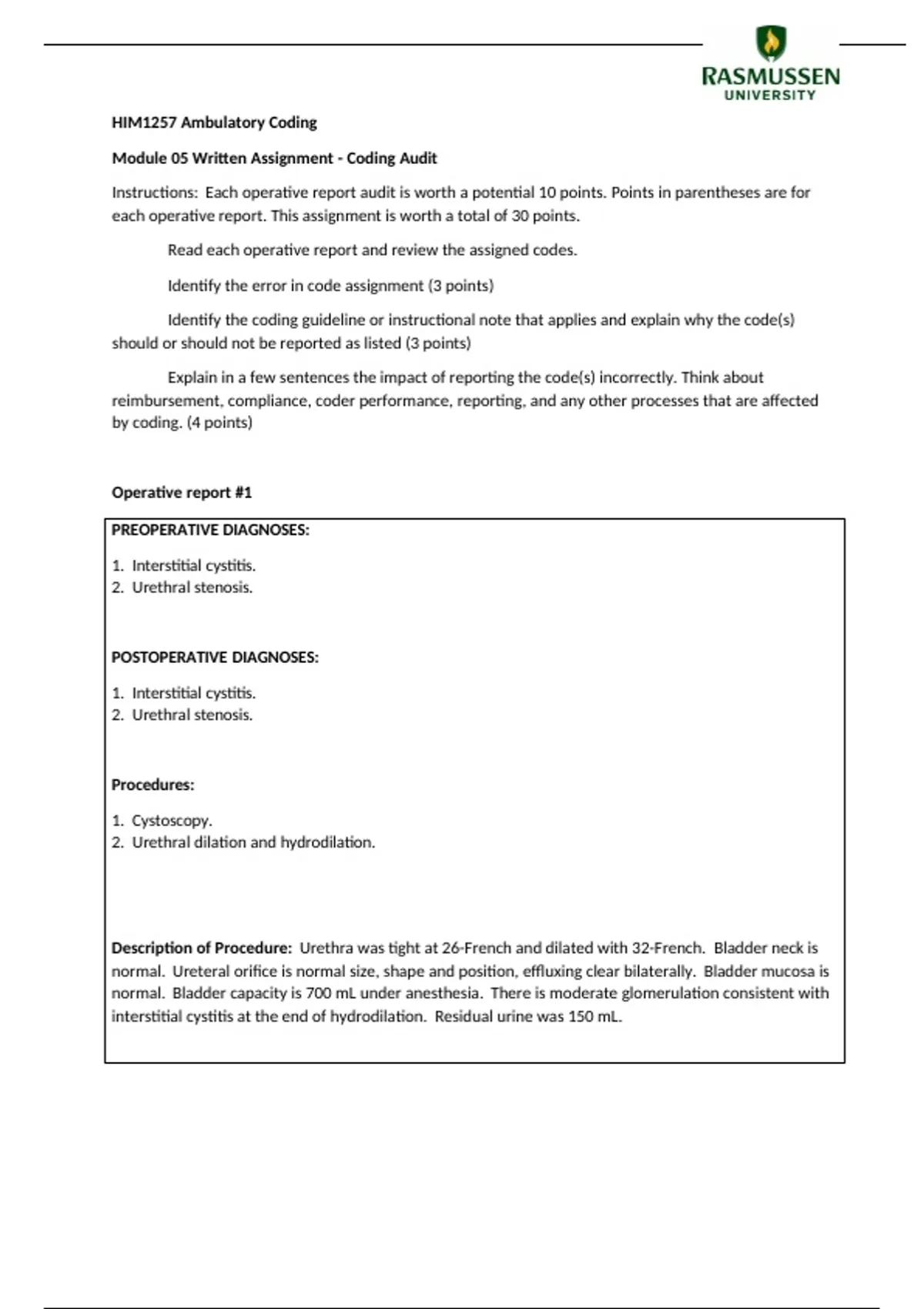 Instructions: Each operative report audit is worth a potential 10 points. Points in parentheses are for