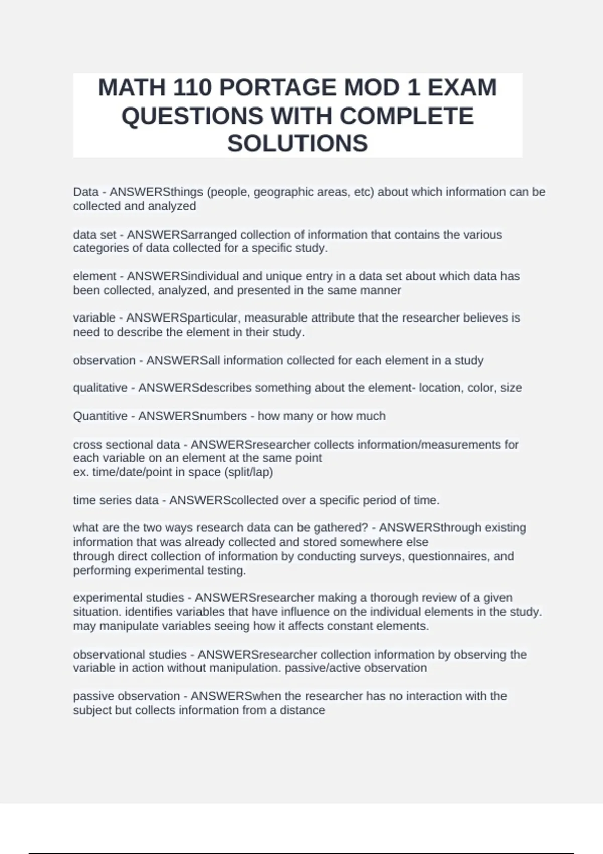 observation - ANSWERSall information collected for each element in a study