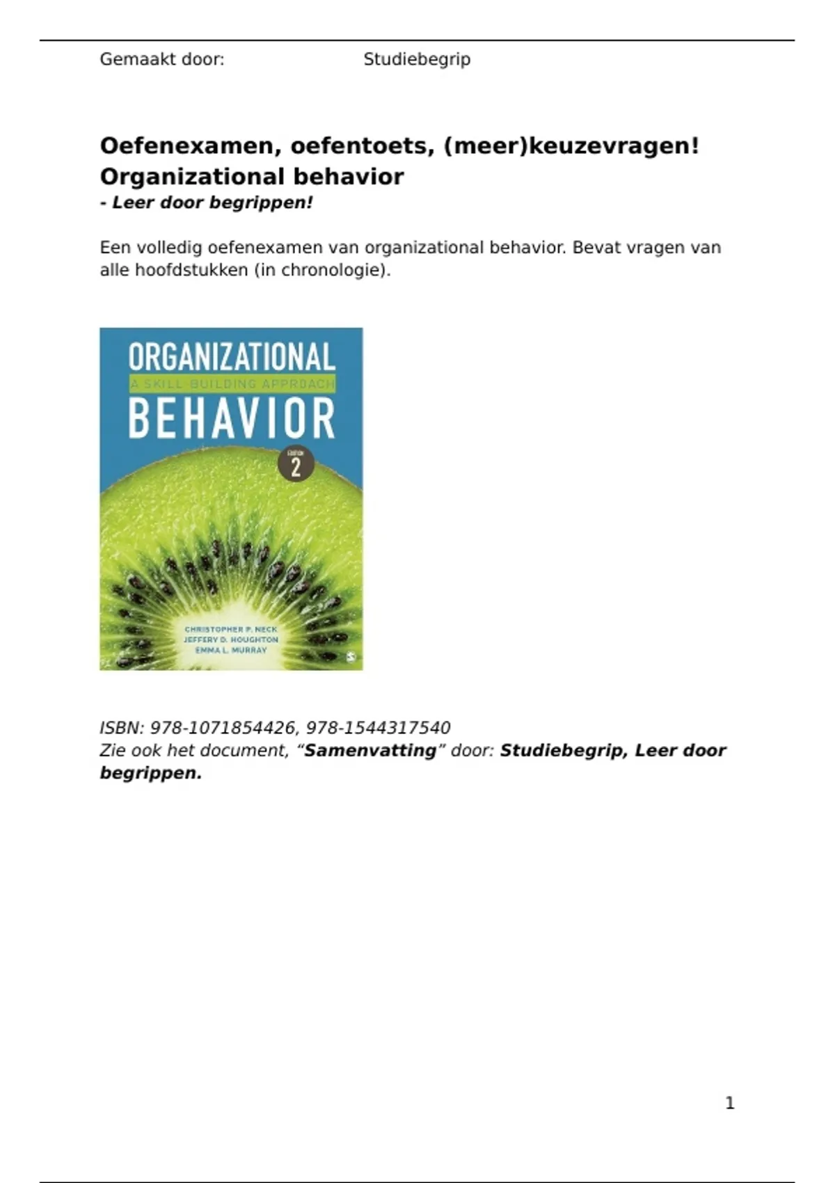 Een volledig oefenexamen van organizational behavior. Bevat vragen van