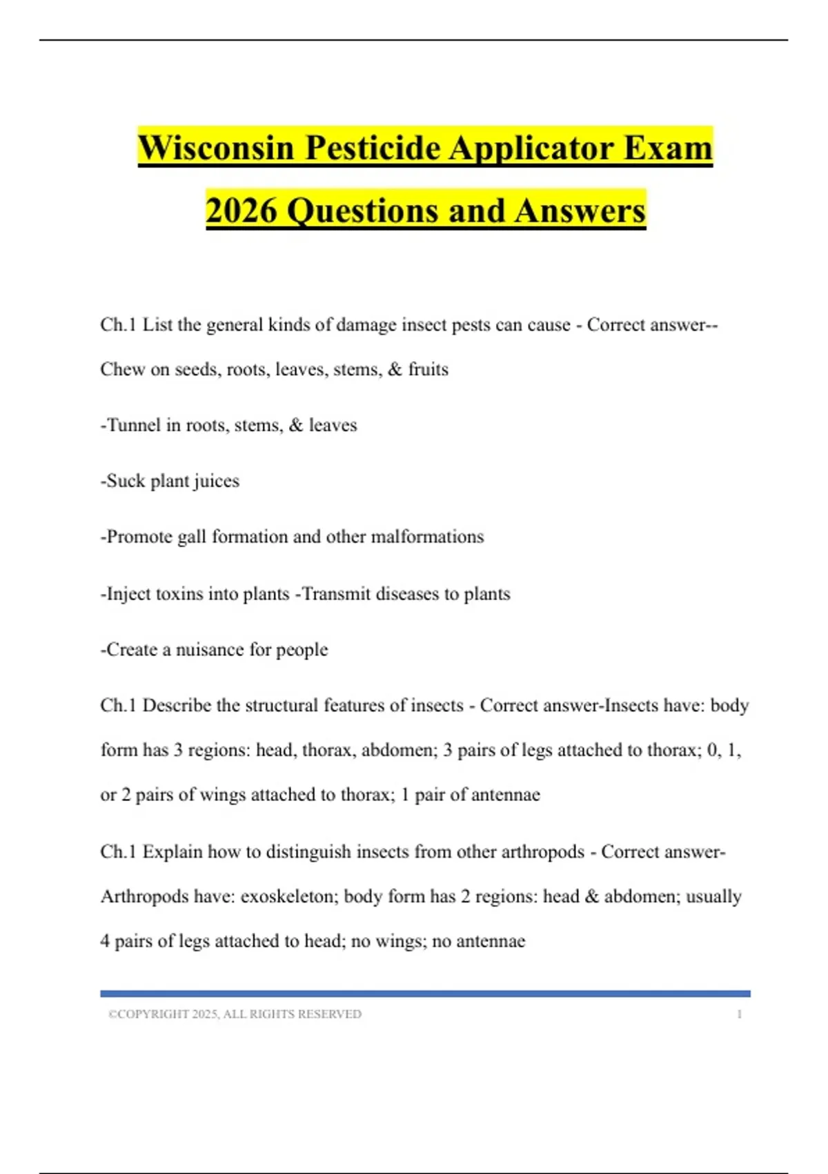 Ch.1 List the general kinds of damage insect pests can cause - Correct answer--