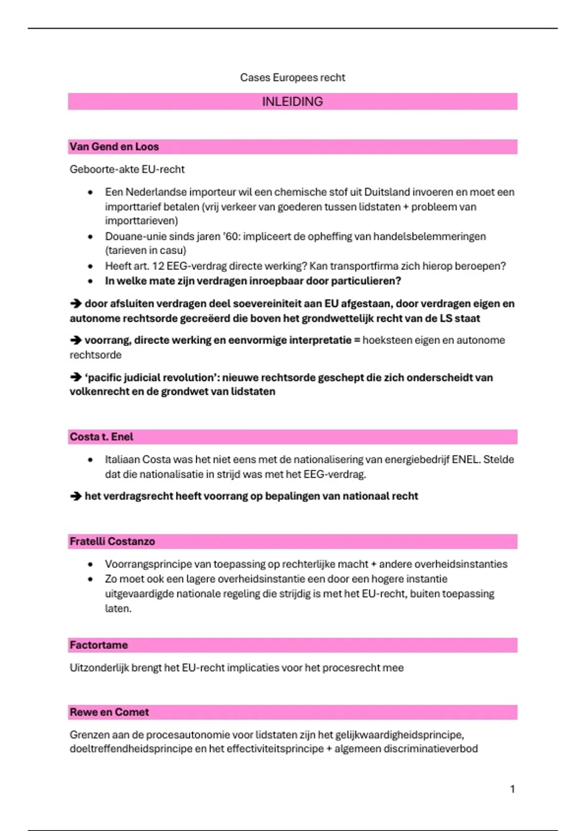 Dit document bevat alle te kennen arresten + uitleg voor het vak Europees recht