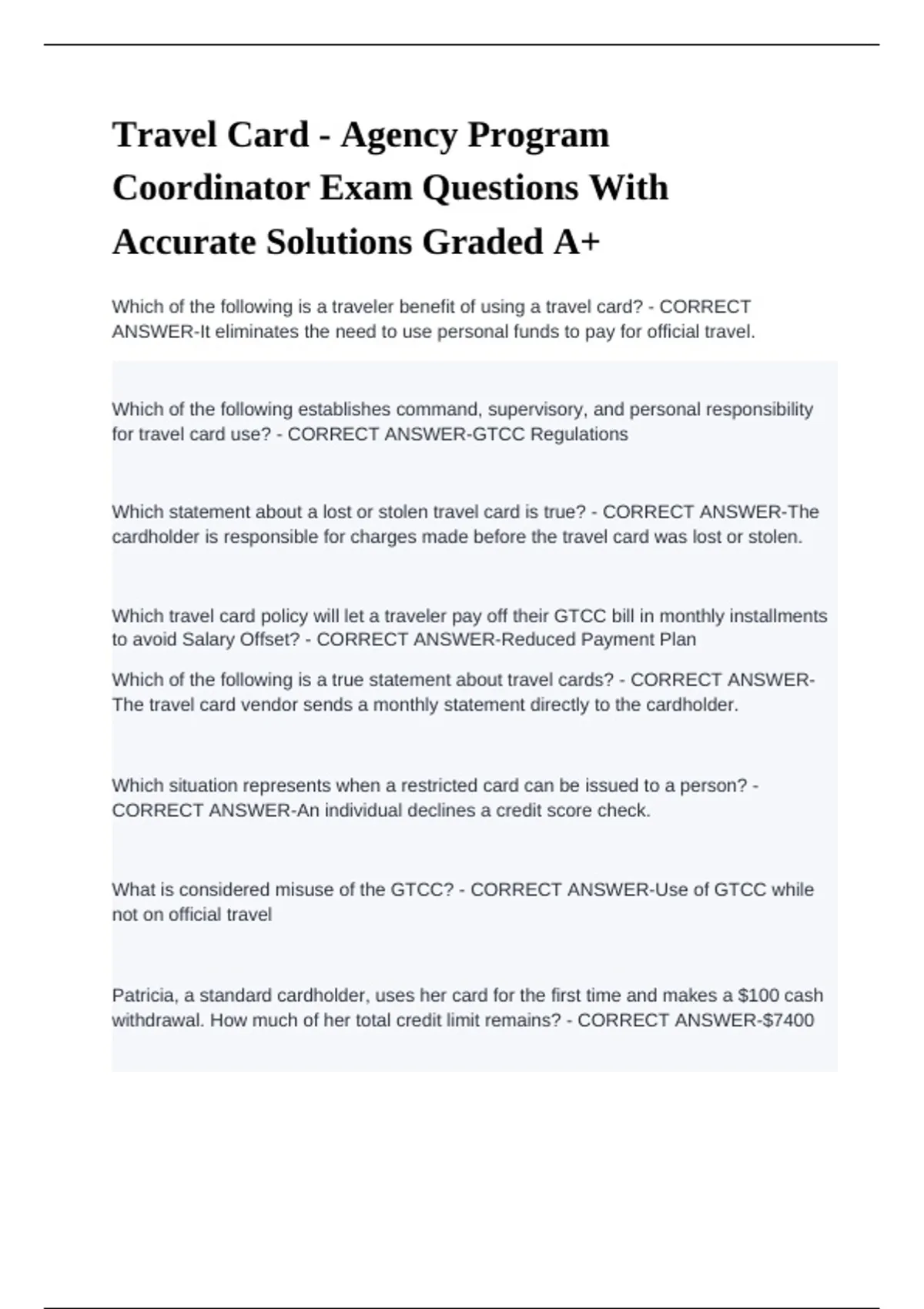 Which of the following is a true statement about travel cards? - CORRECT ANSWER-