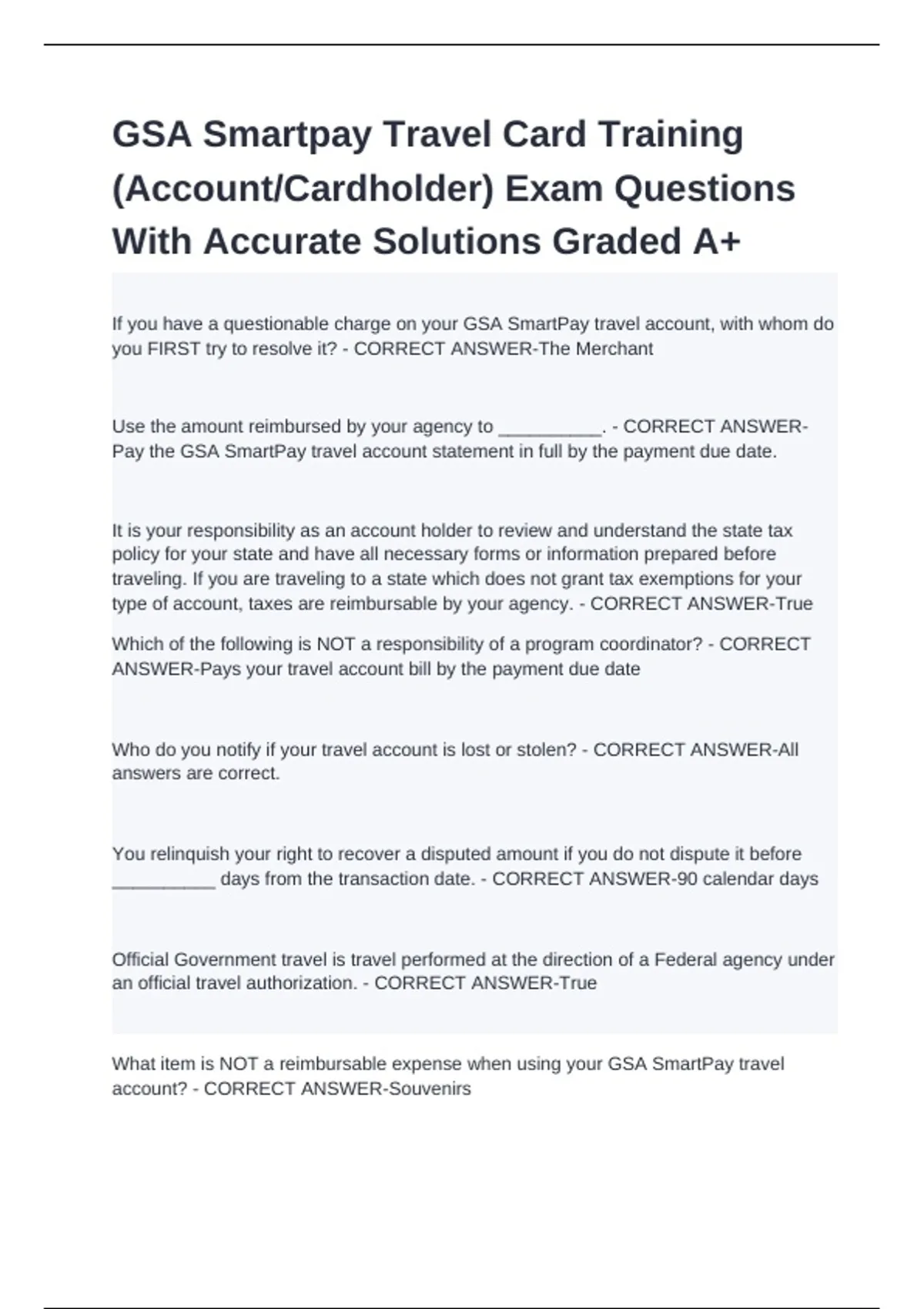(Account/Cardholder) Exam Questions