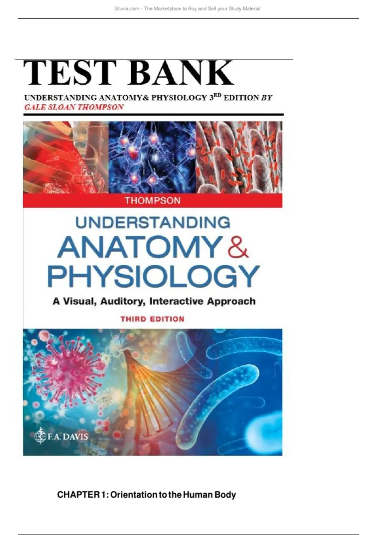 Test Bank for Understanding Anatomy and Physiology, Thompson, 3rd Edition (Thompson, 2020), Chapter 1-25 | All Chapters