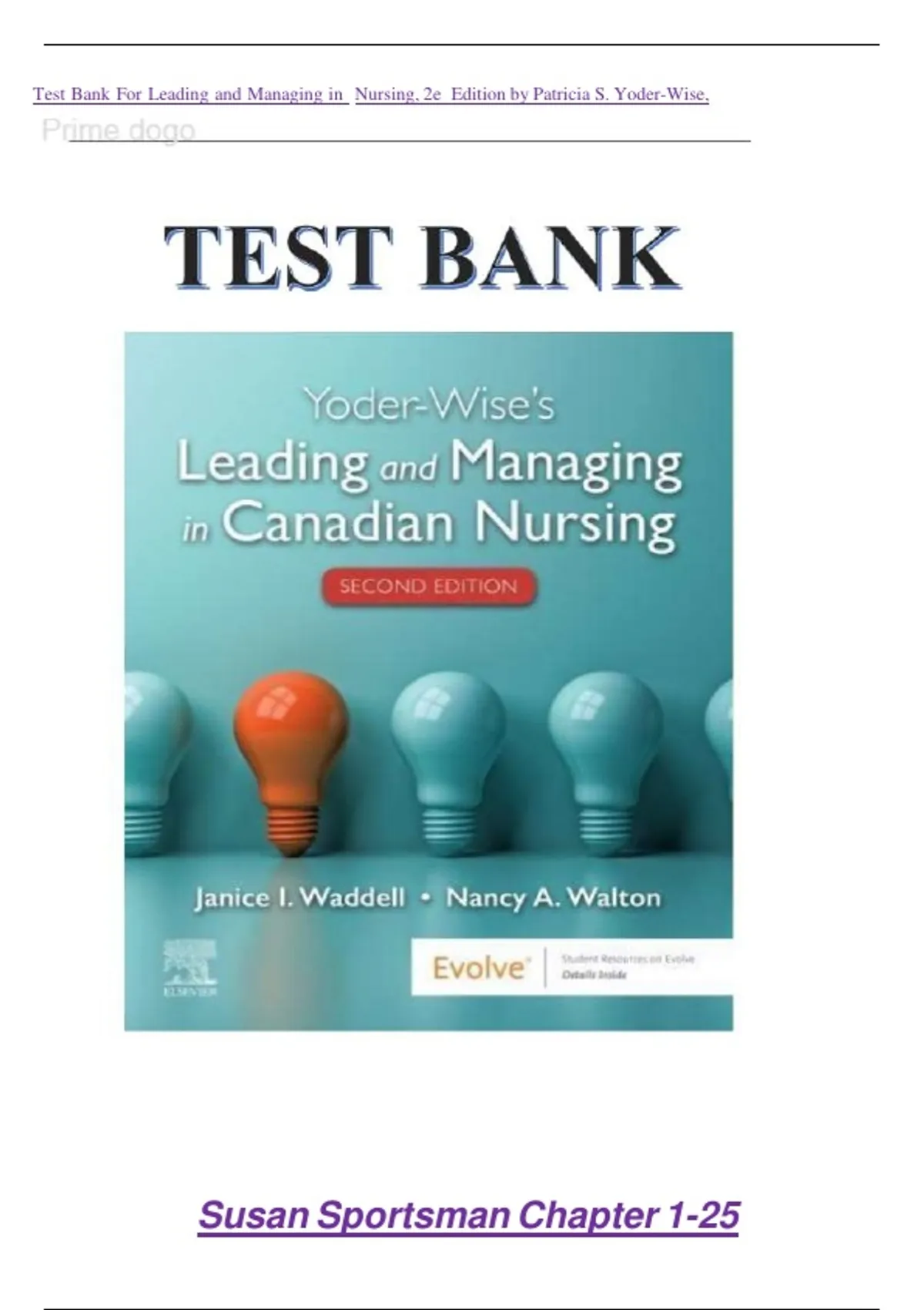 Test Bank for Yoder-Wise’s Leading and Managing in Canadian Nursing 2nd Edition (Elsevier, 2019) by Patricia S. Yoder's-Wise, Janice Waddell and Nancy Walton, Isbn no; 9781771721684, all 32 Chapters Covered (NEWEST 2025)