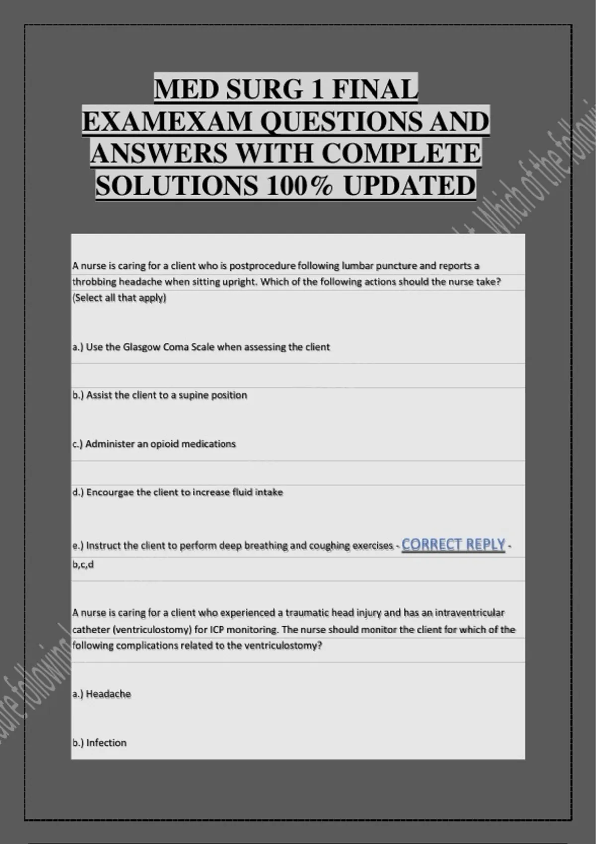 e.) Instruct the client to perform deep breathing and coughing exercises - CORRECT REPLY -