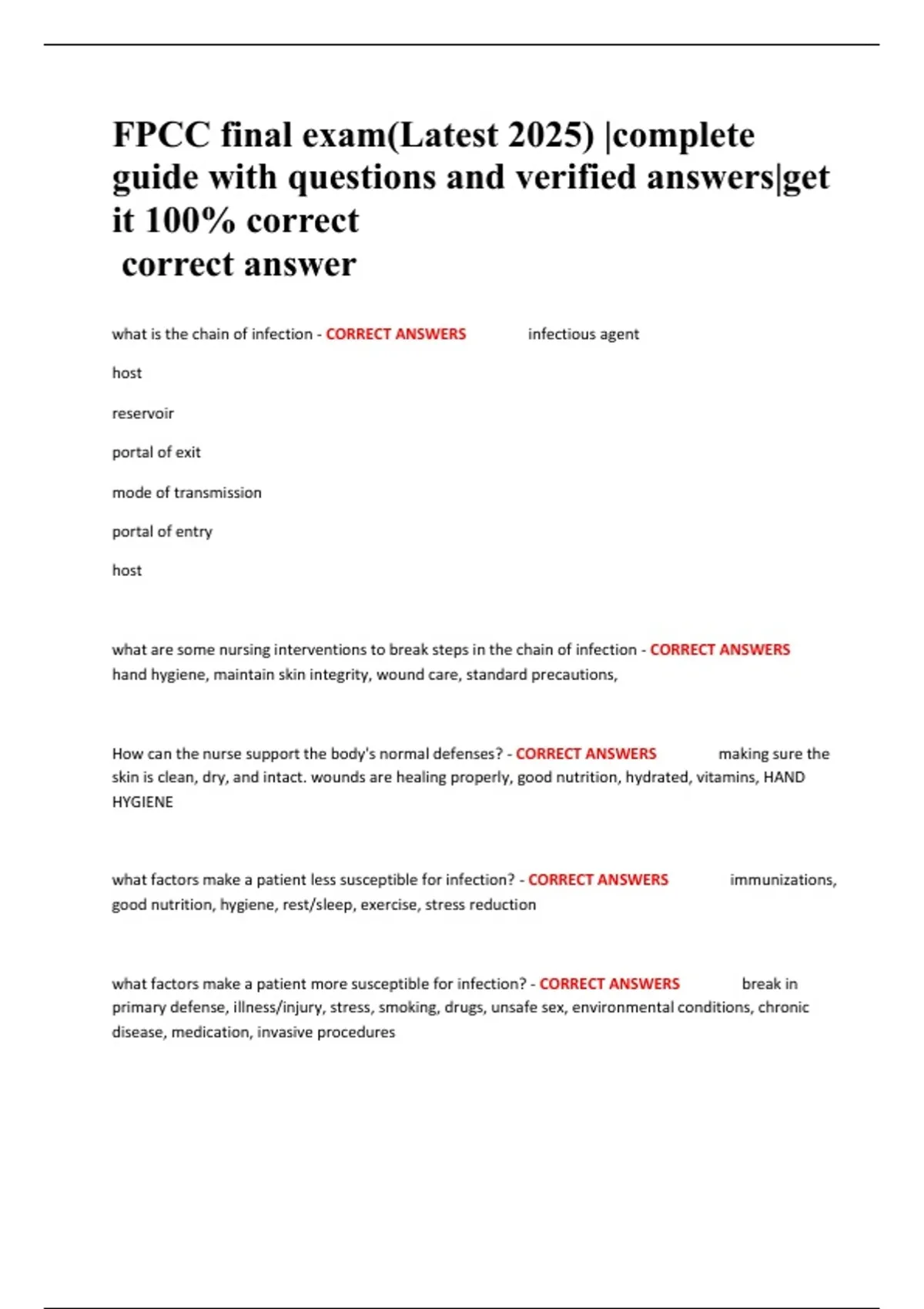 Summary FPCC final exam(Latest 2025) |complete guide with questions and verified answers|get it 100% correct correct answer