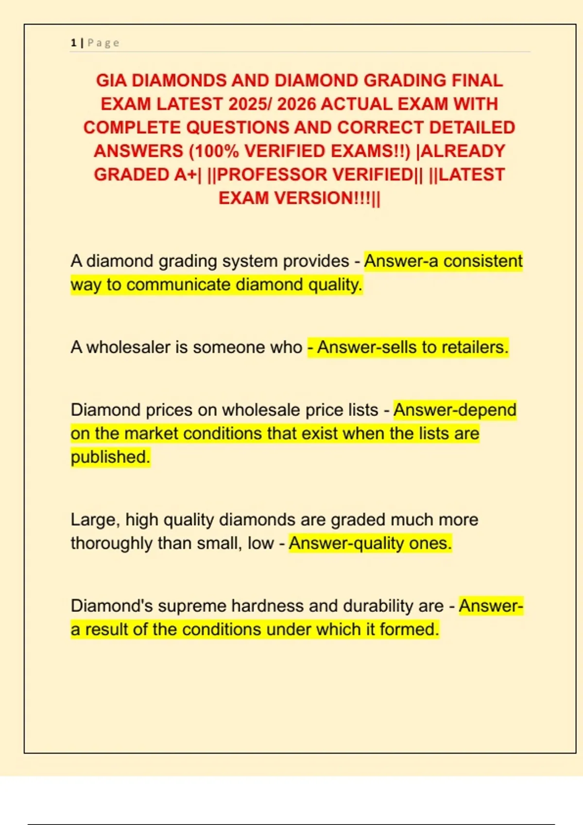A diamond grading system provides - Answer-a consistent