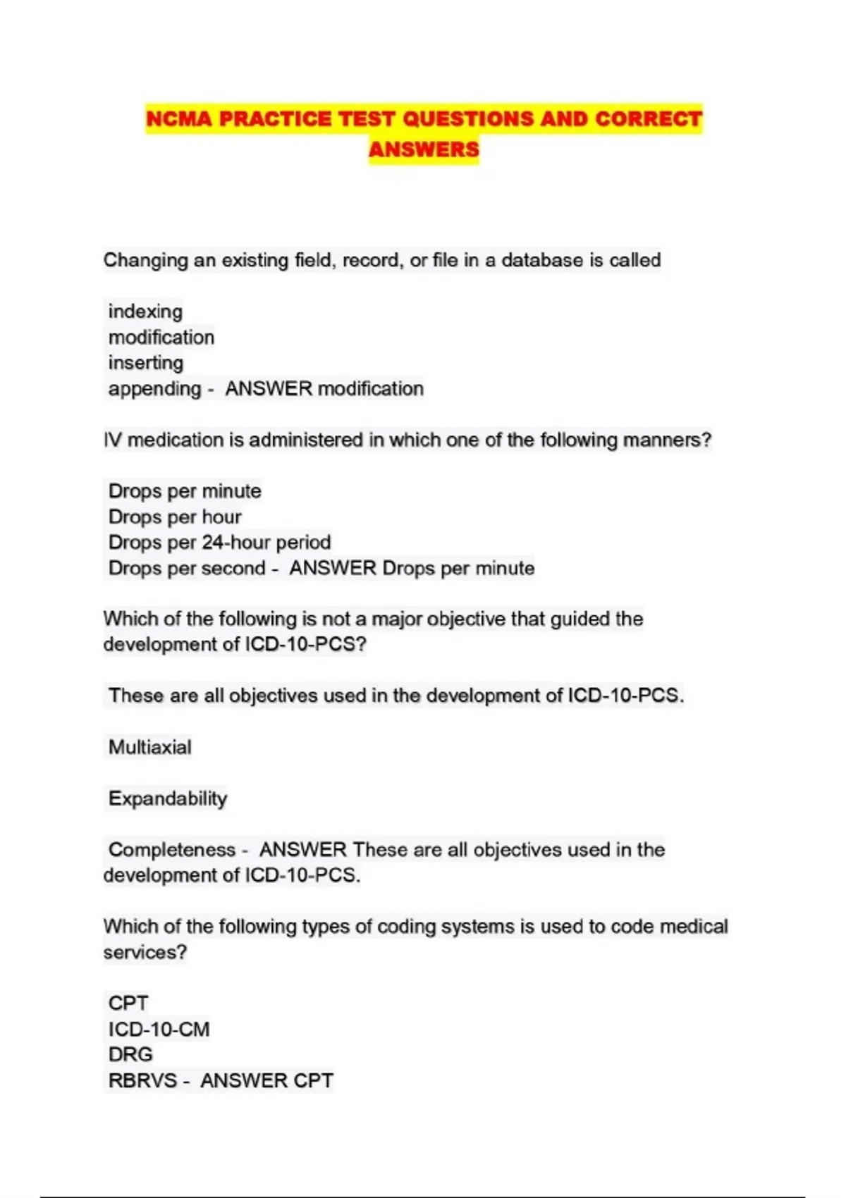 NCMA PRACTICE TEST QUESTIONS AND CORRECT ANSWERS