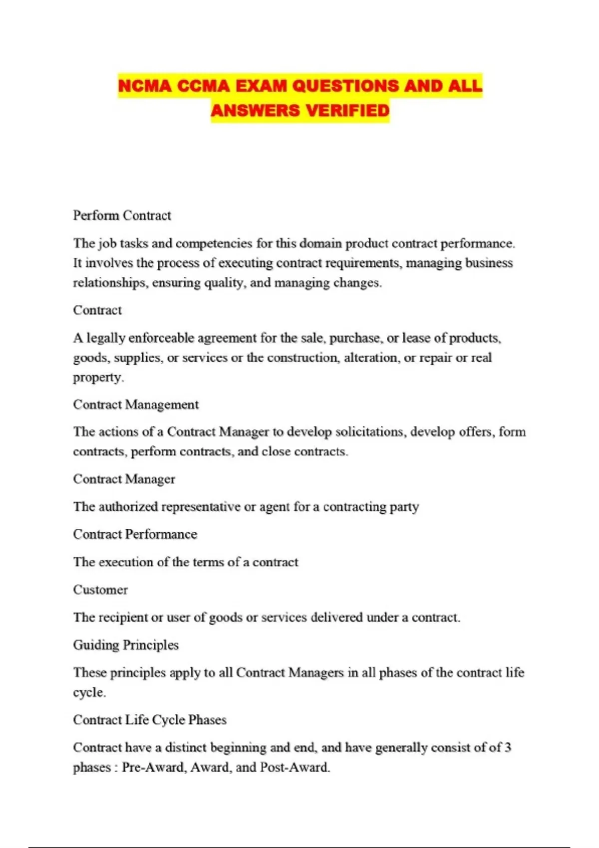 NCMA CCMA EXAM QUESTIONS AND ALL ANSWERS VERIFIED