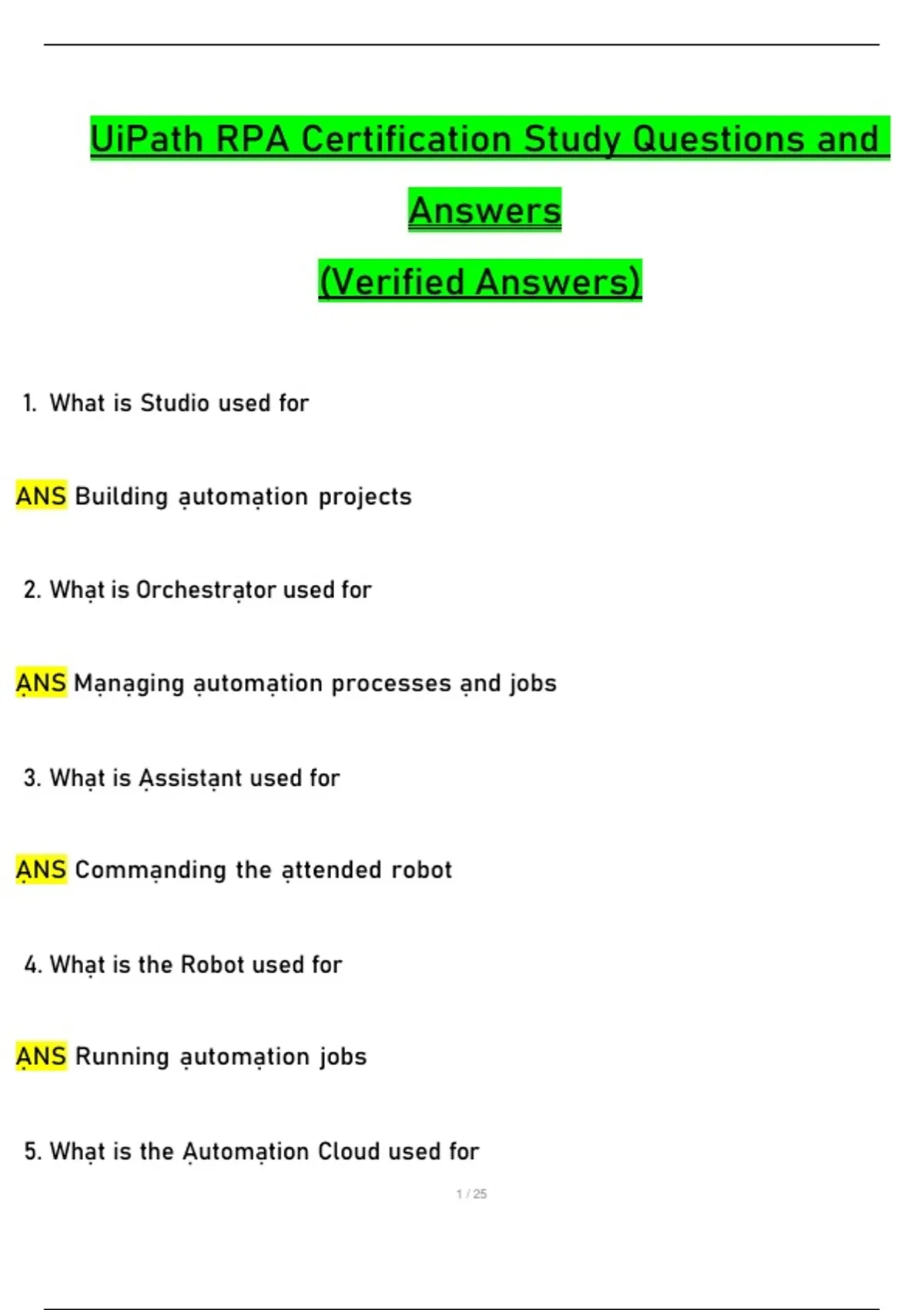 UiPath RPA Certification Study Questions and Answers (Verified Answers) UiPath RPA Certification Study Questions and Answers (Verified Answers)