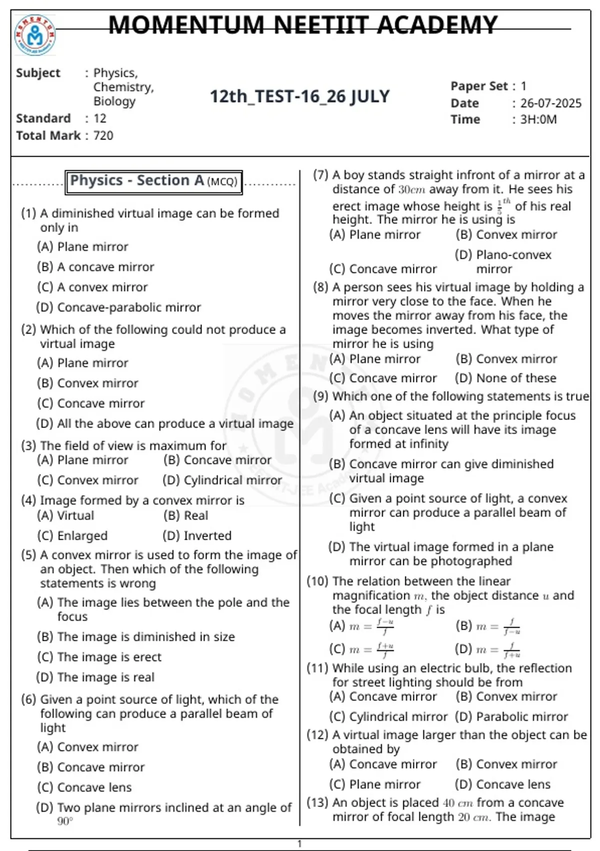 Biology 12th_TEST-16_26 JULY Date : 26-07-2025