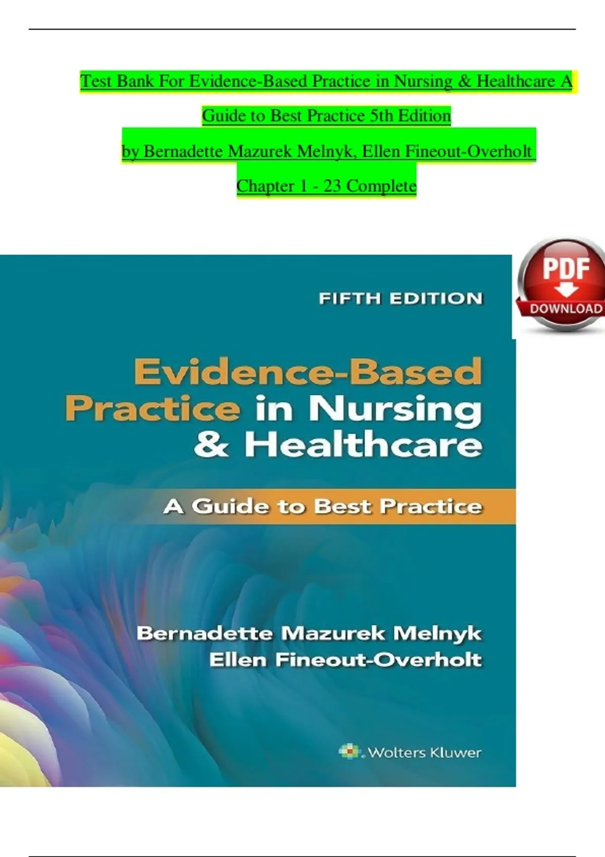 Test Bank for Evidence-Based Practice in Nursing & Healthcare 5th Edition by Bernadette Mazurek Melnyk, Ellen Fineout-Overholt Chapter 1 - 23 Complete