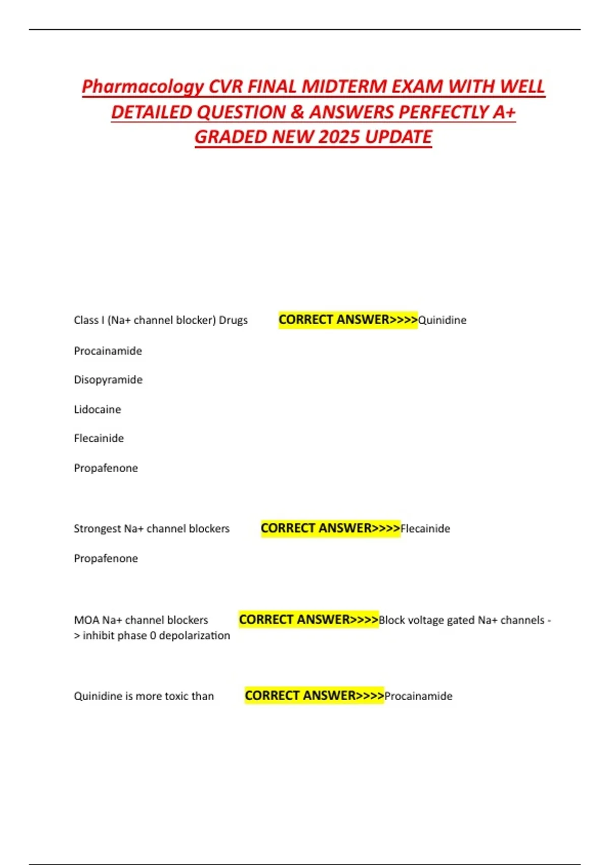 Pharmacology CVR FINAL MIDTERM EXAM WITH WELL