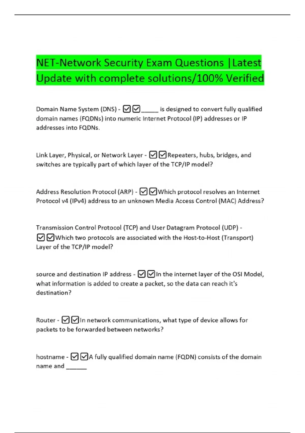 NET-Network Security Exam Questions |Latest Update with complete solutions/100% Verified