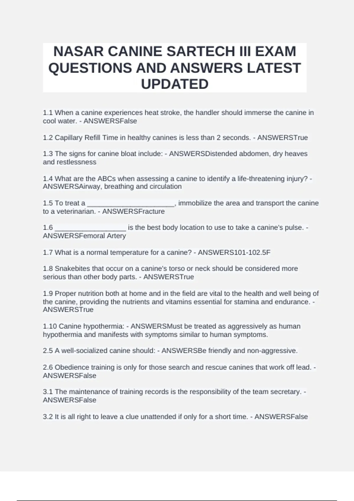 NASAR CANINE SARTECH III EXAM QUESTIONS AND ANSWERS LATEST UPDATED