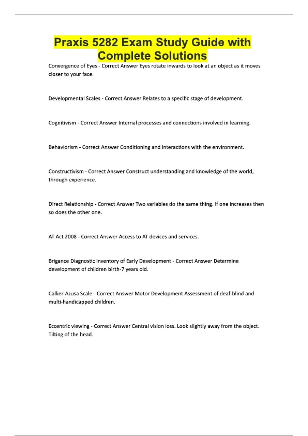 Praxis 5282 Exam Study Guide with Complete Solutions