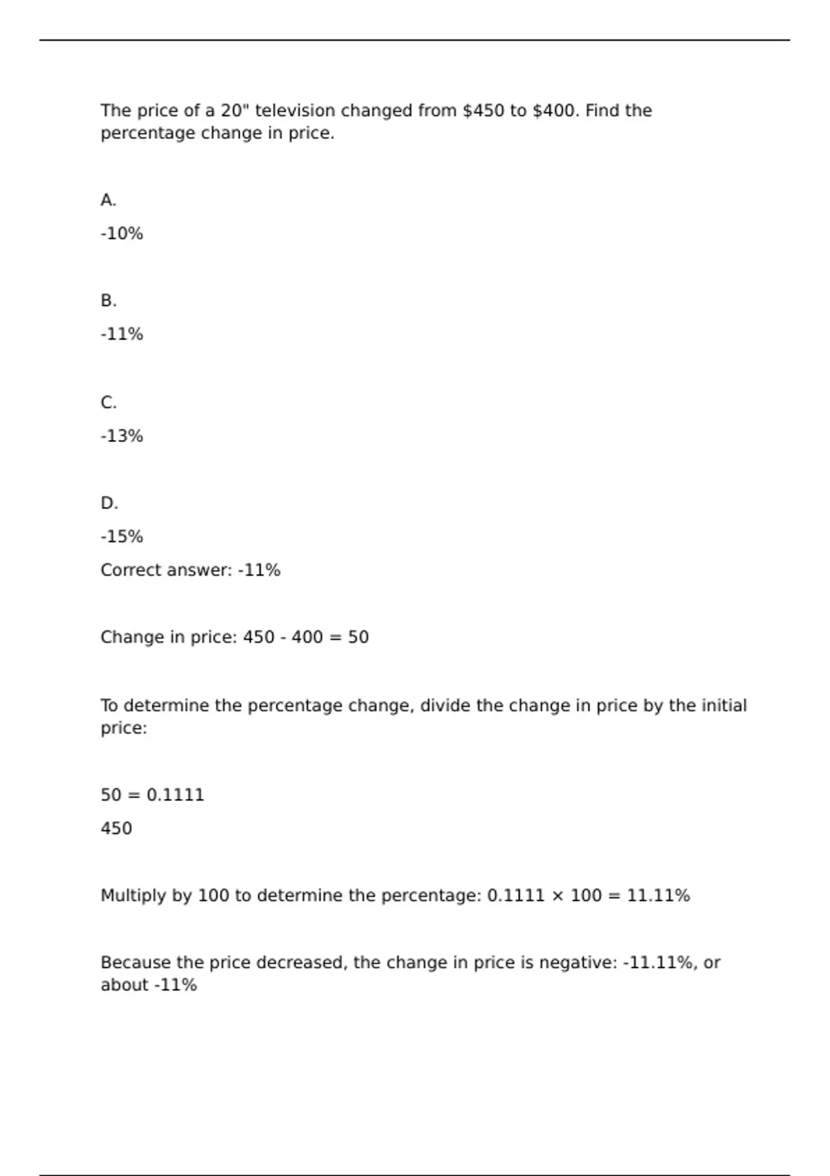 Multiply by 100 to determine the percentage: 0.1111 × 100 = 11.11%