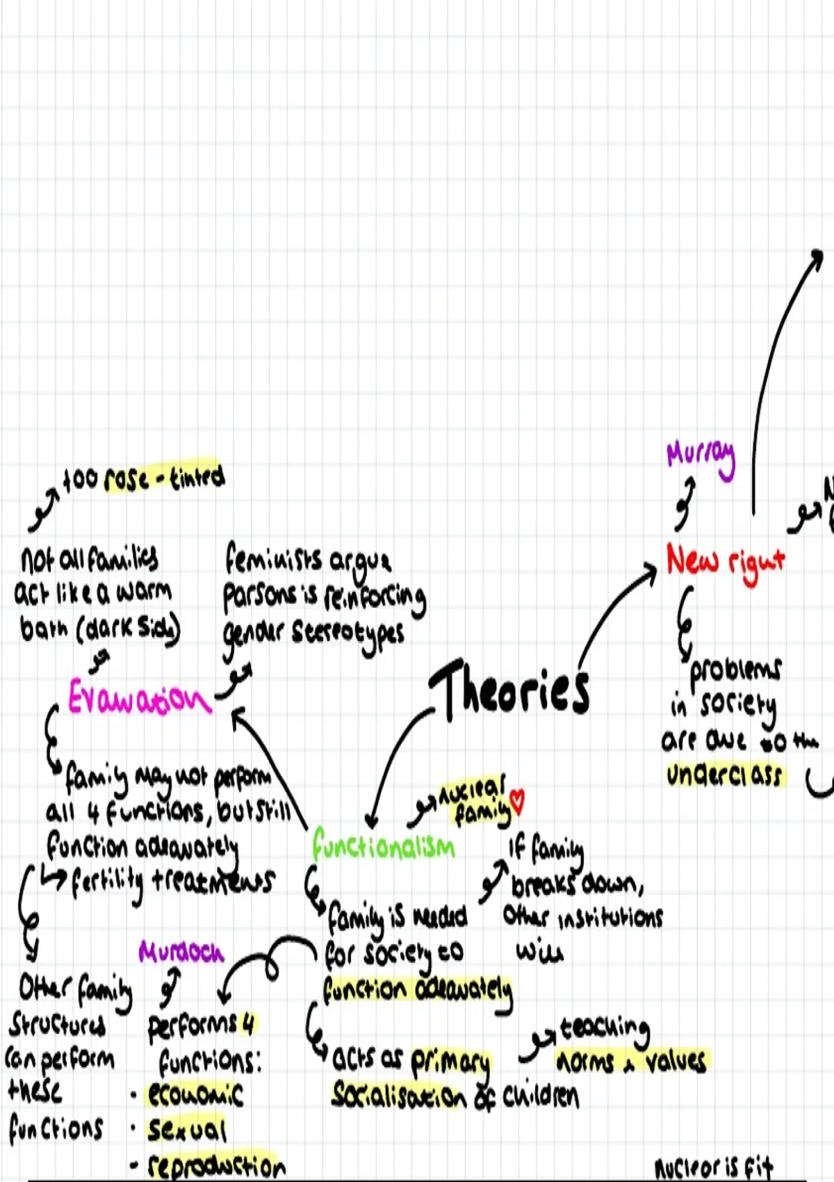 I created these two mindmaps for the family and households topic in sociology for AQA. One mind map is about the theories of family including: Marxism, functionalism, feminism, new right, postmodernism. The other mindmap is about the childhood topic including the 4 main theories of childhood and their sociologists. All this knowledge is from my own notes and what I have been taught, this helped me to summarise all information which was needed for the sociology exam and this helped me to easily add more detail as these mindmaps provide the basic information needed.