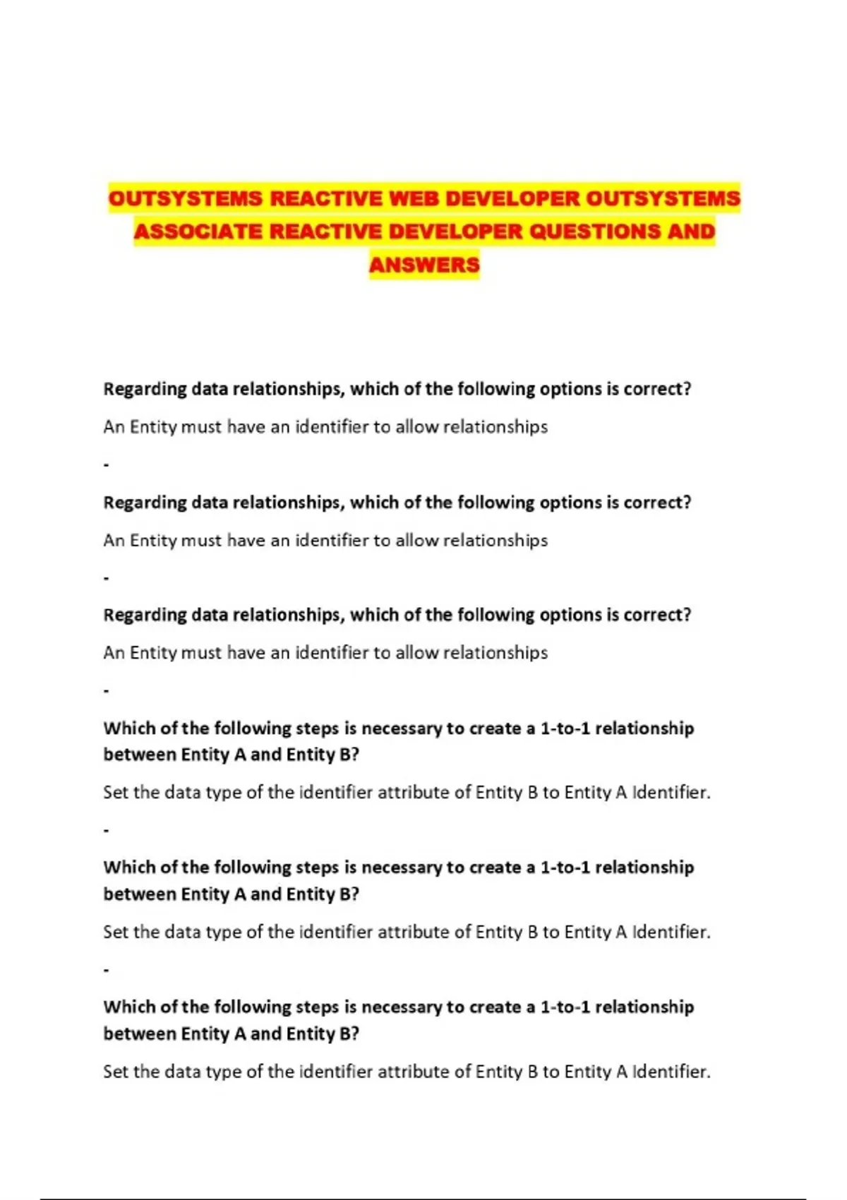 OUTSYSTEMS REACTIVE WEB DEVELOPER OUTSYSTEMS ASSOCIATE REACTIVE DEVELOPER QUESTIONS AND ANSWERS.....