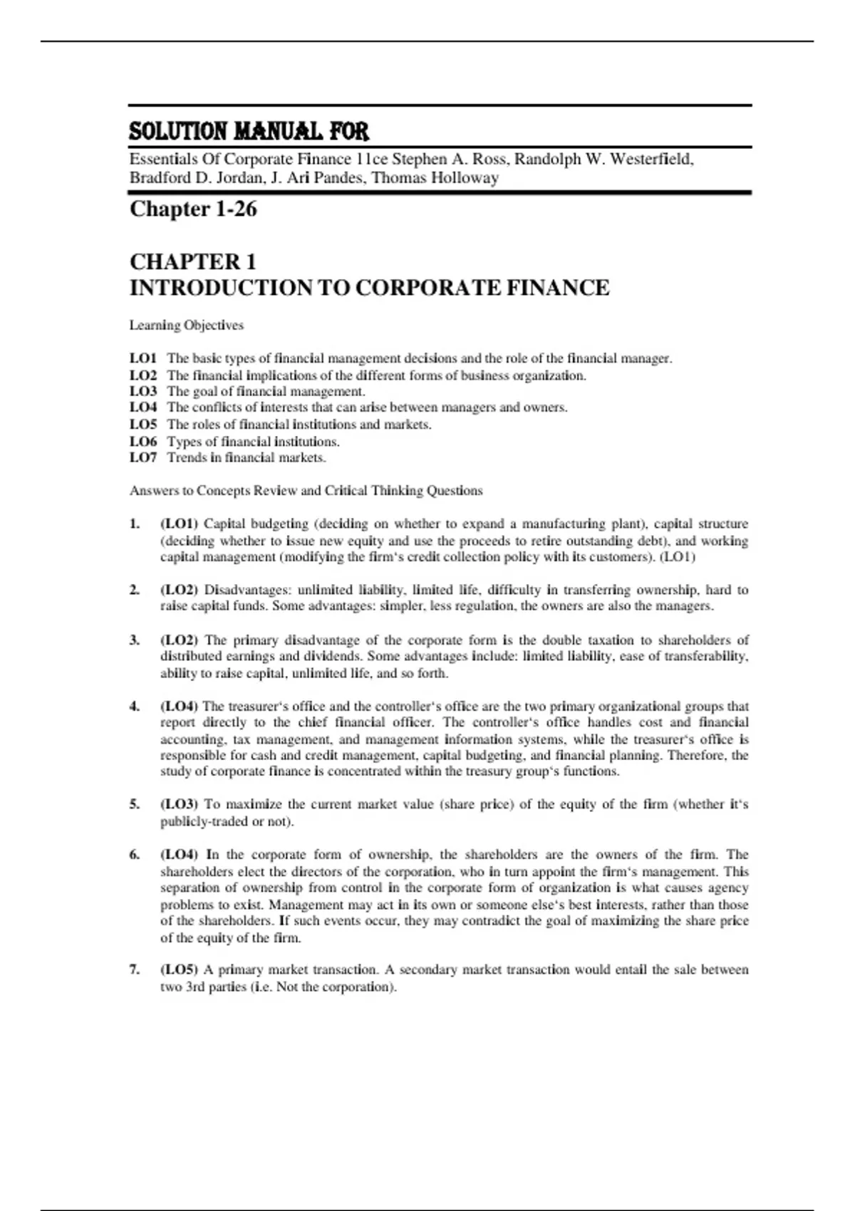 5. (LO3) To maximize the current market value (share price) of the equity of the firm (whether it‘s