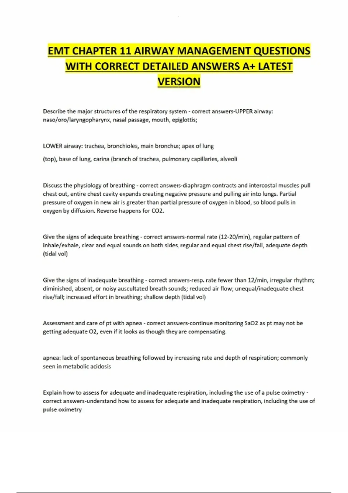 EMT CHAPTER 11 AIRWAY MANAGEMENT QUESTIONS WITH CORRECT DETAILED ANSWERS A+ LATEST VERSION