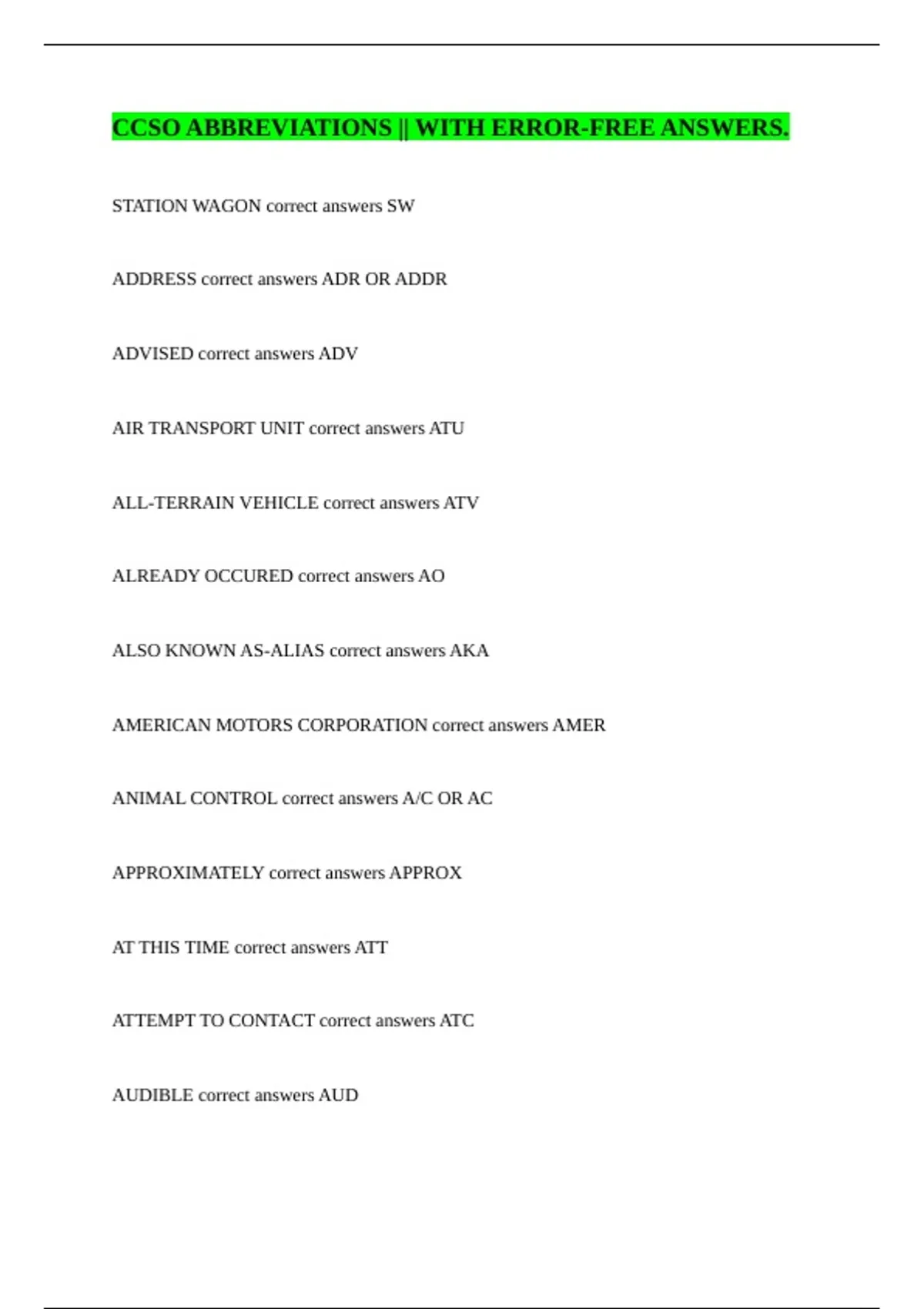 ADDRESS correct answers ADR OR ADDR