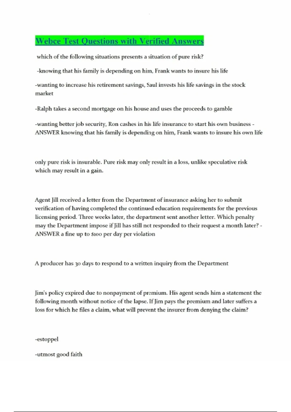 Webce Test Questions with Verified Answers Webce Test Questions with Verified Answers