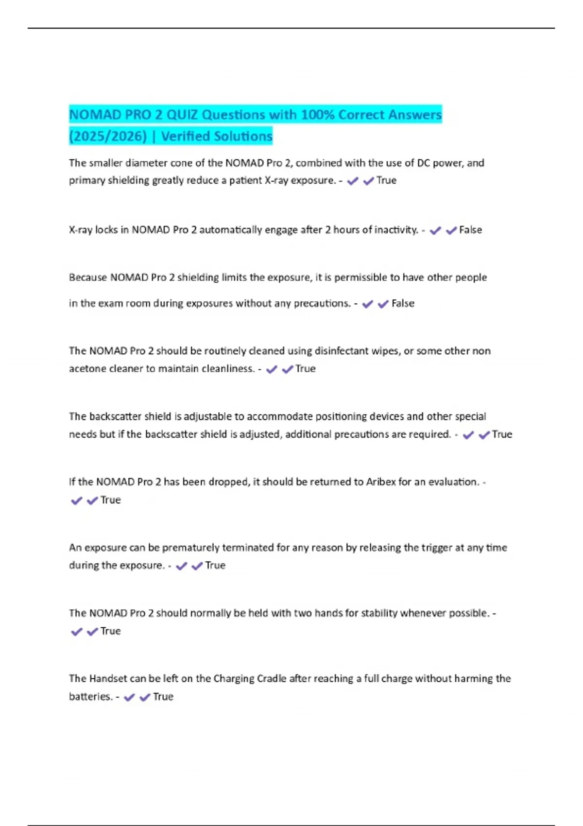 NOMAD PRO 2 QUIZ Questions with 100% Correct Answers (2025/2026) | Verified Solutions