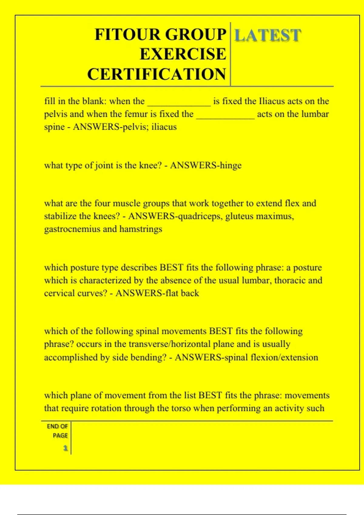 FITOUR GROUP EXERCISE CERTIFICATION QUESTIONS AND ANSWERS 2025