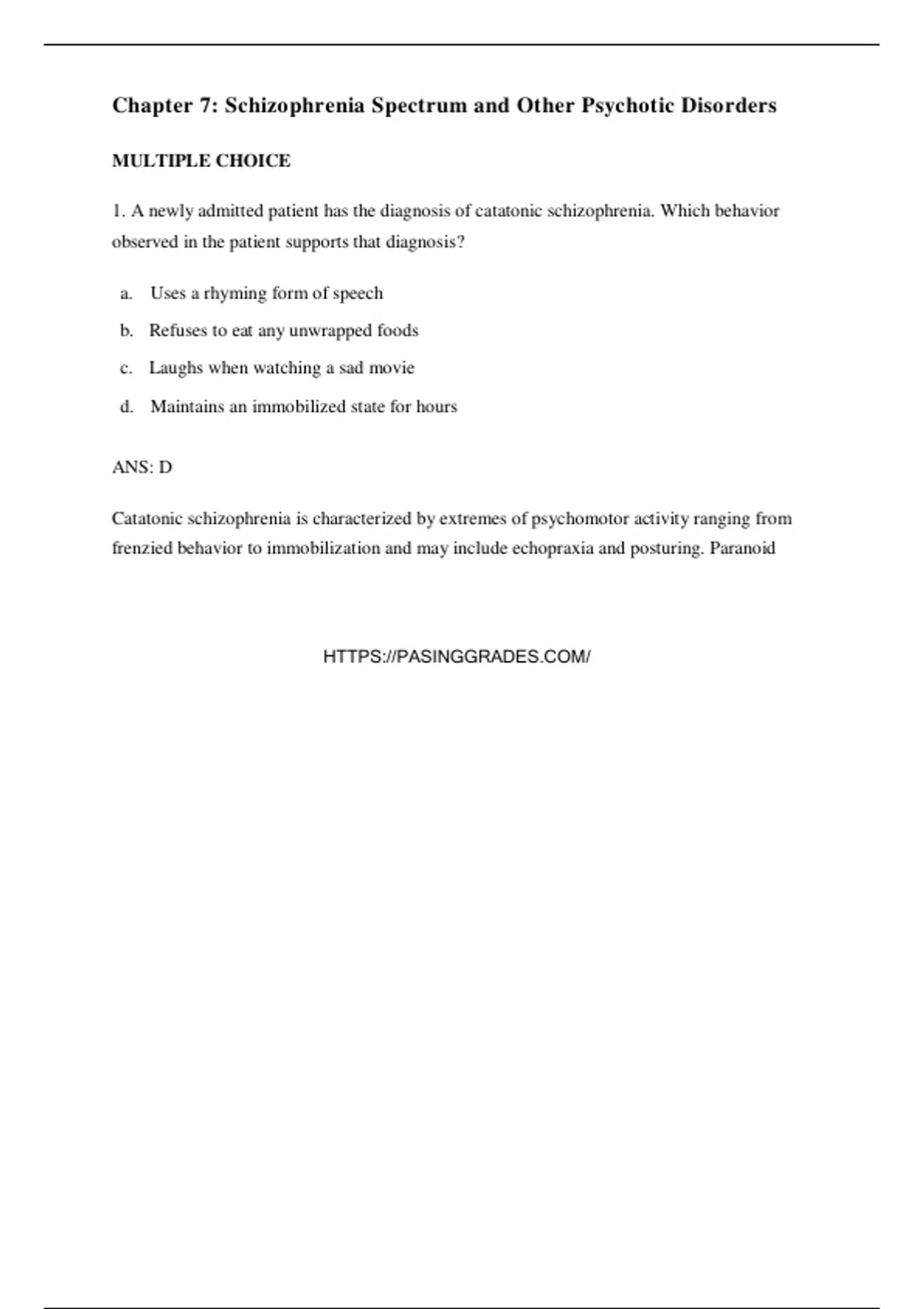 frenzied behavior to immobilization and may include echopraxia and posturing. Paranoid