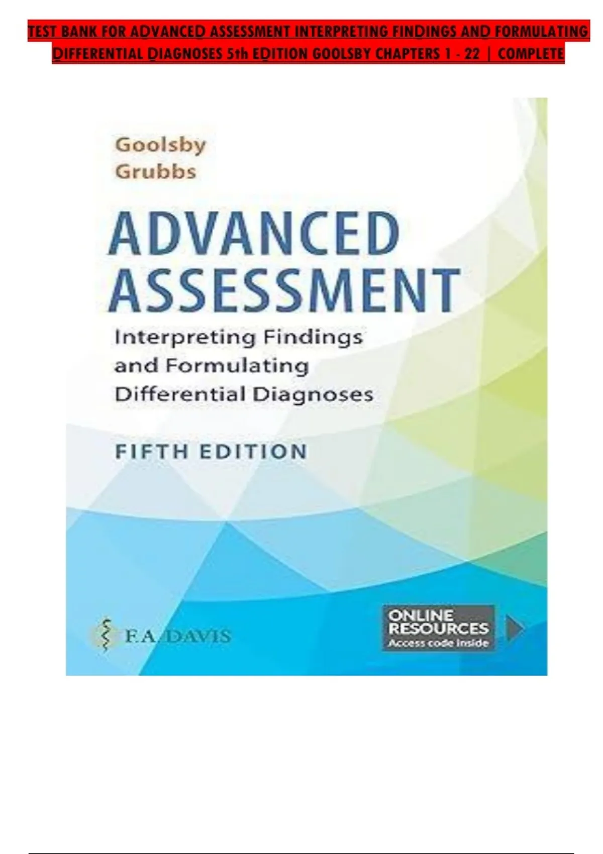 TEST BANK for Advanced Assessment Interpreting Findings and Formulating Differential Diagnoses 5th Edition by Goolsby Chapters 1-22, Complete