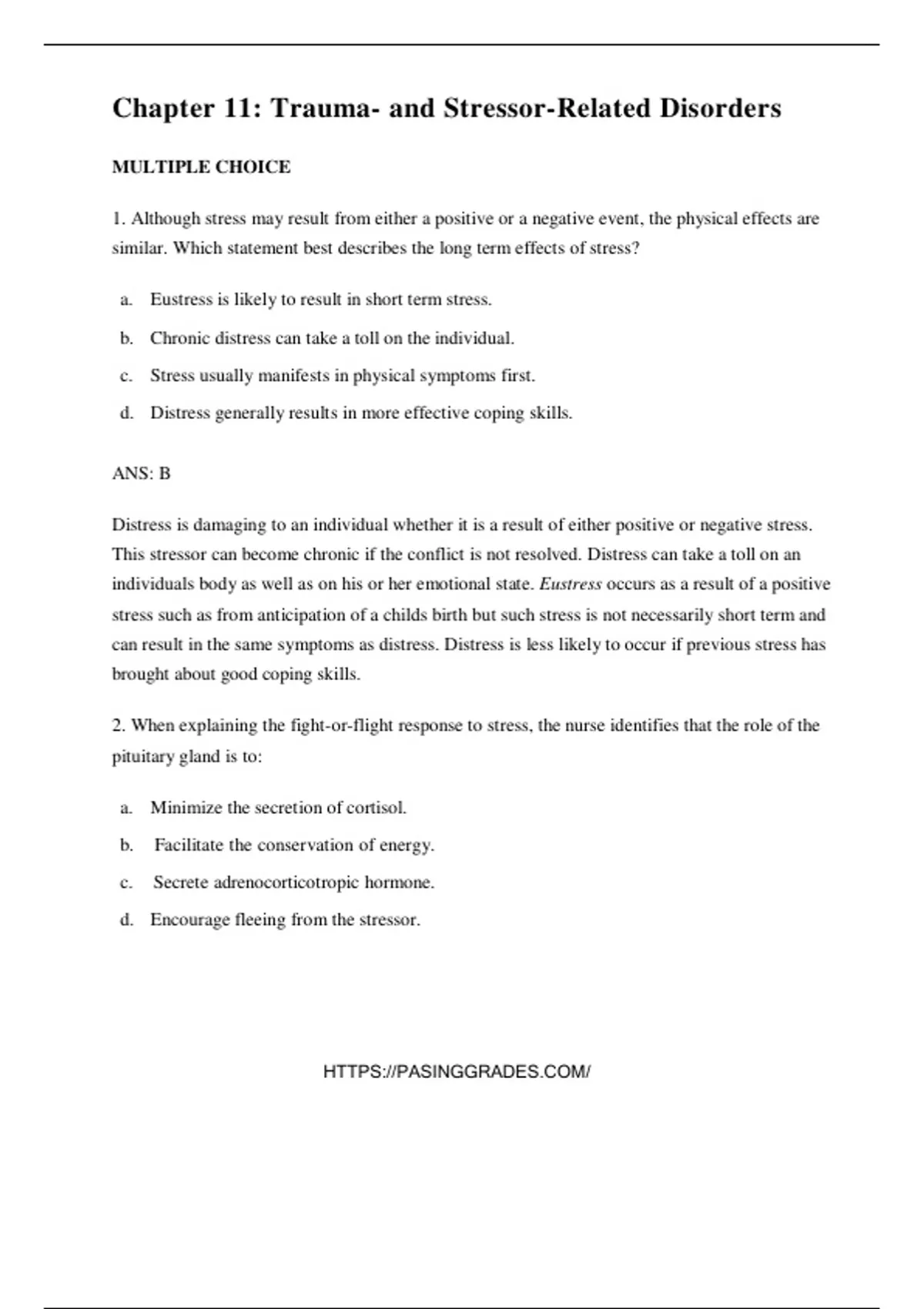 similar. Which statement best describes the long term effects of stress?