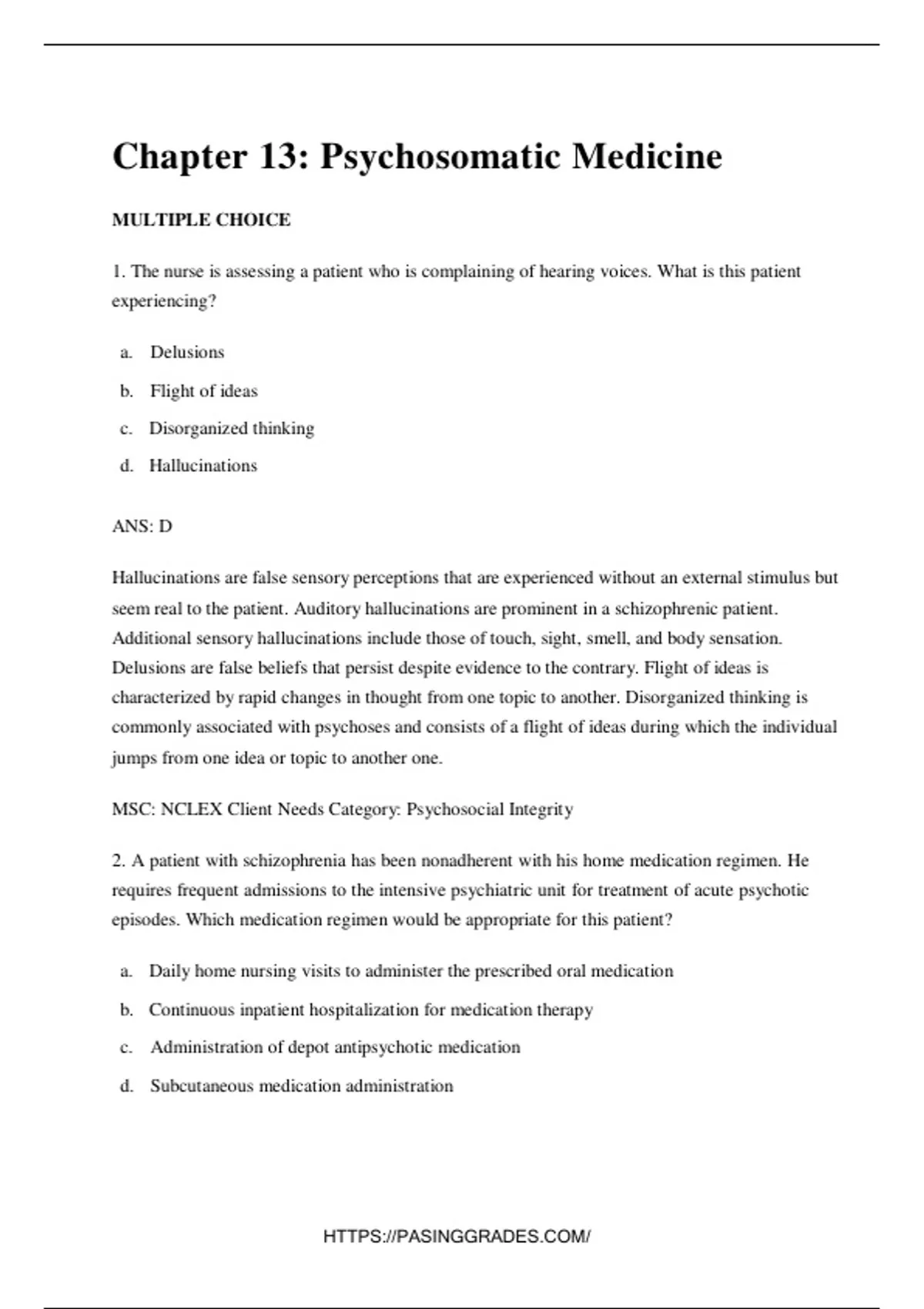 1. The nurse is assessing a patient who is complaining of hearing voices. What is this patient