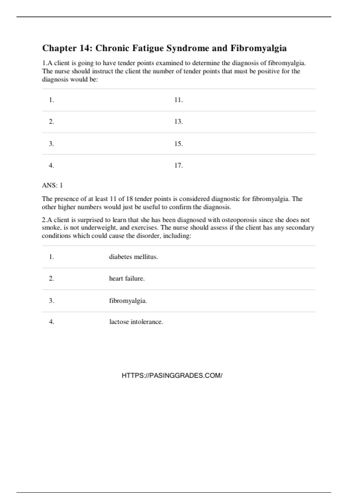 1.A client is going to have tender points examined to determine the diagnosis of fibromyalgia.