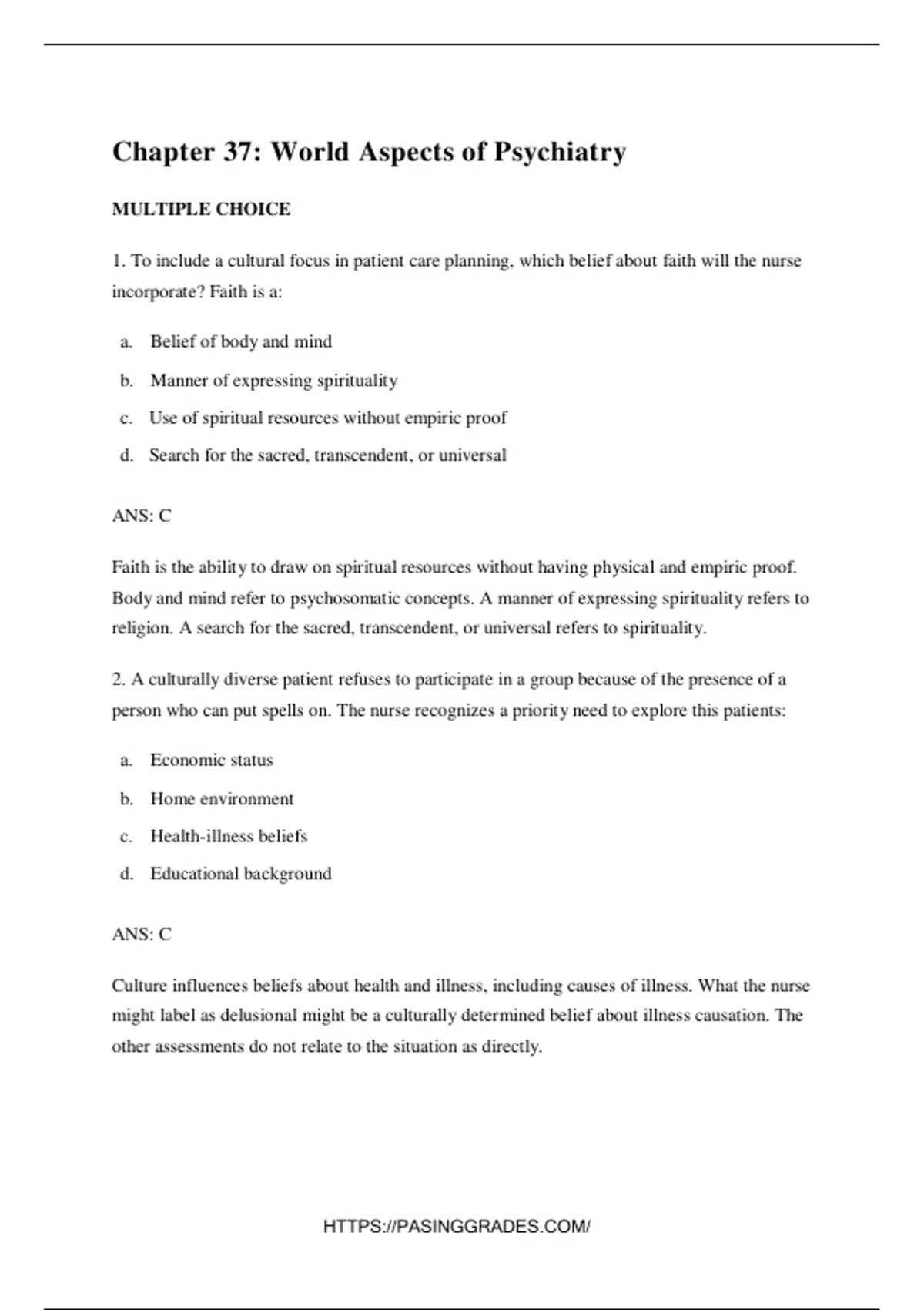 1. To include a cultural focus in patient care planning, which belief about faith will the nurse