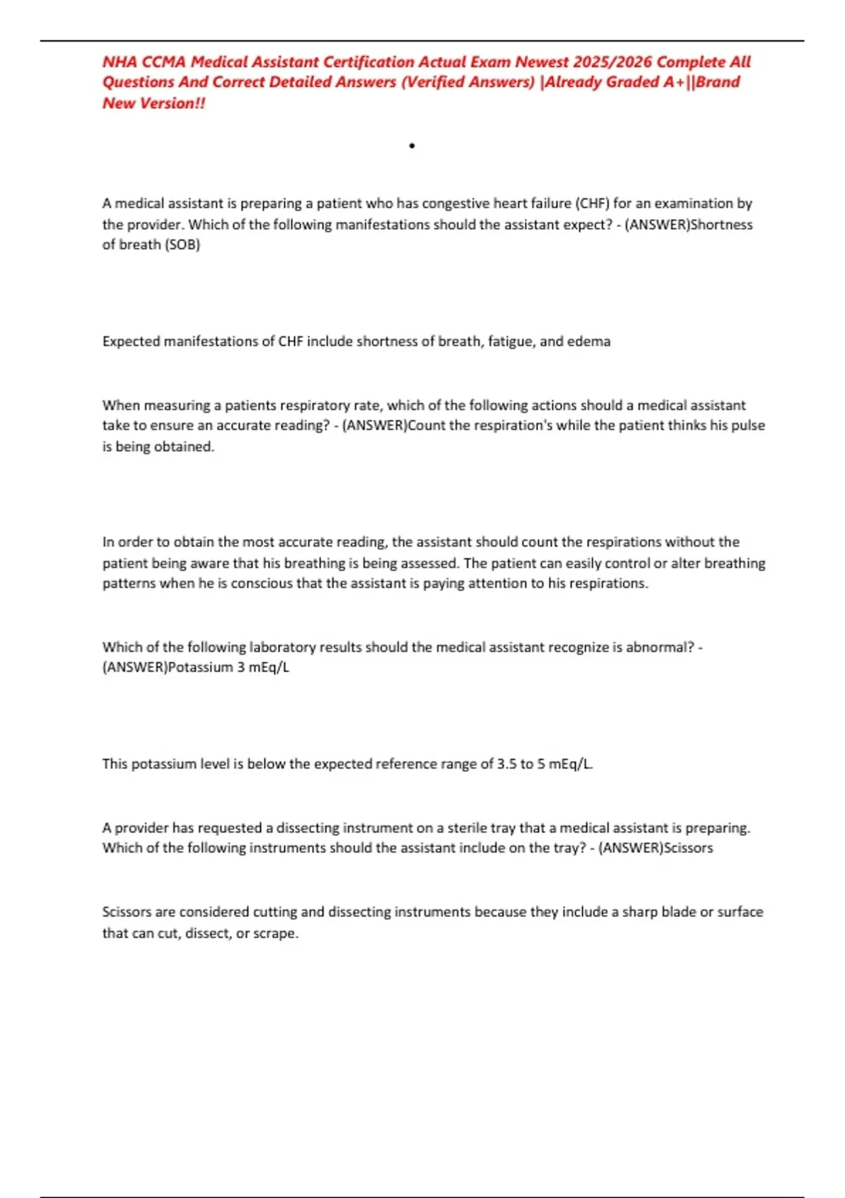 ,NHA CCMA Medical Assistant Certification Actual Exam Newest 2025/2026 Complete All