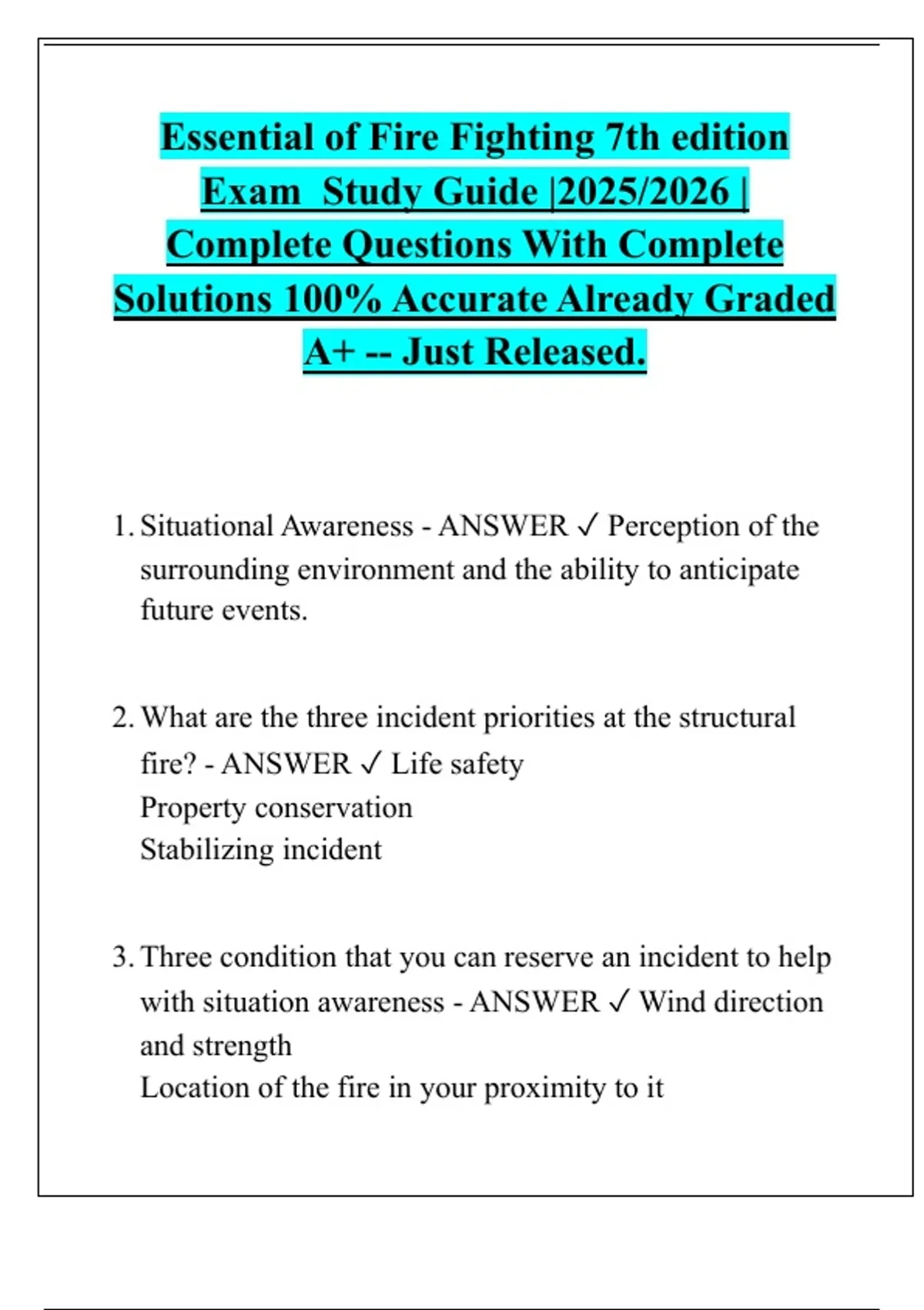 fire? - ANSWER ✓ Life safety